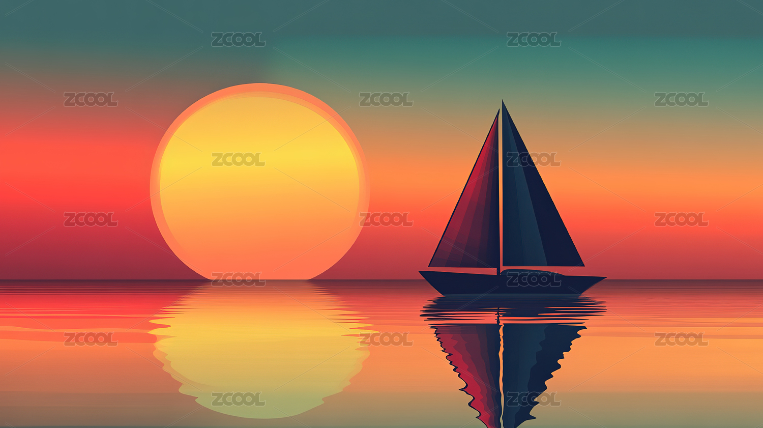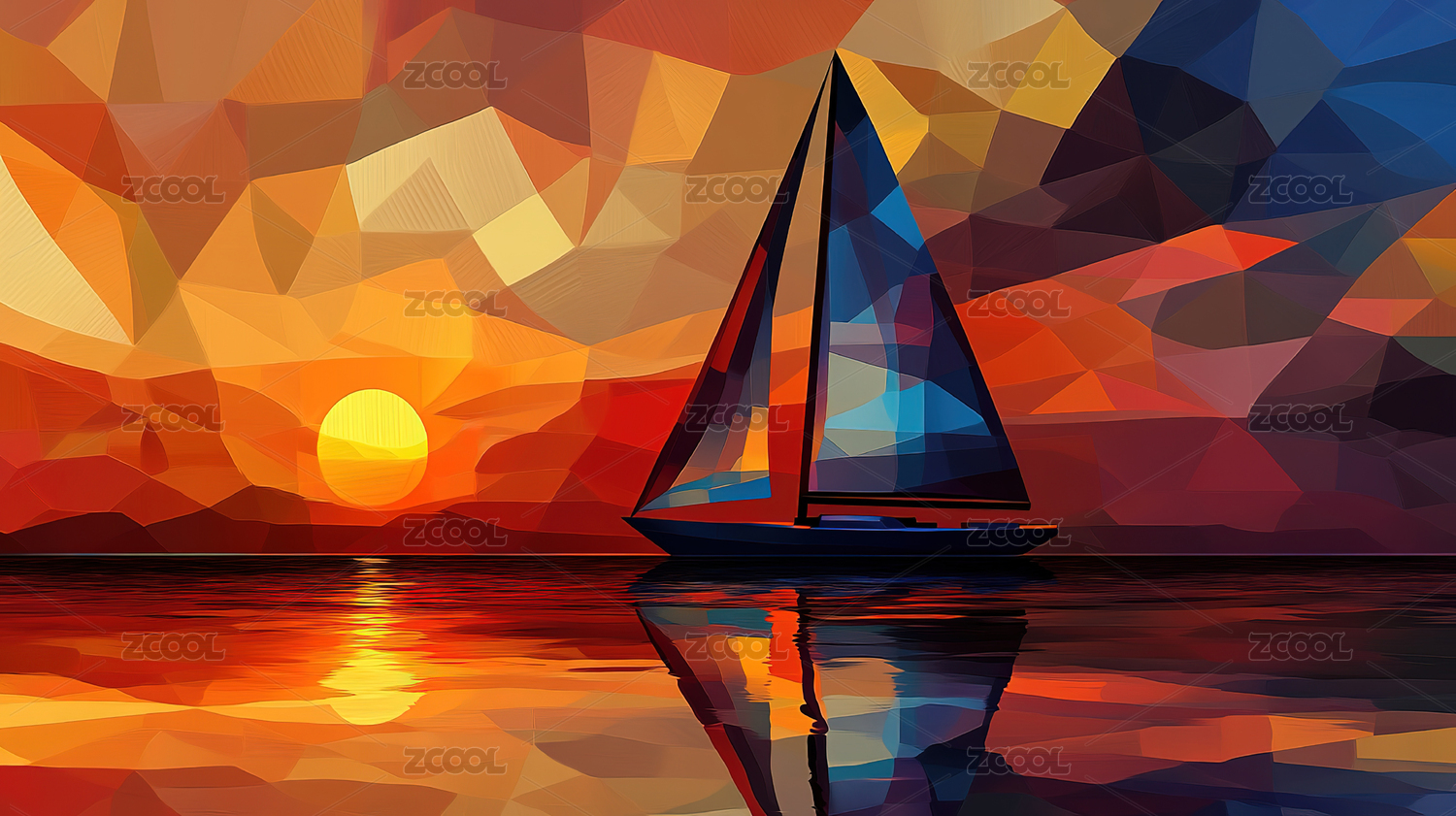 低多边形风格的日落帆船