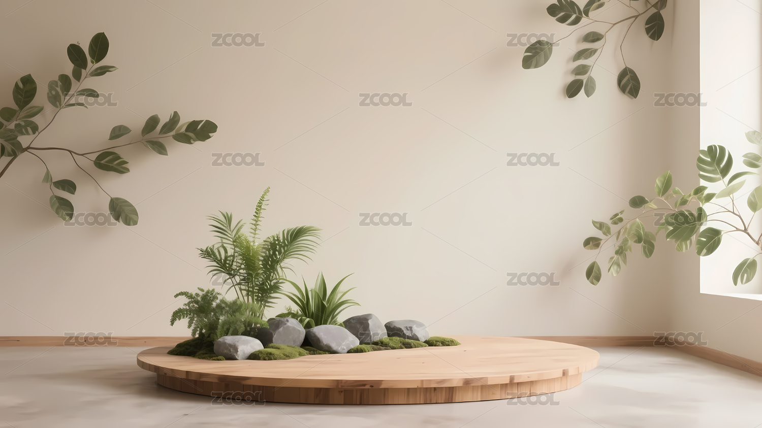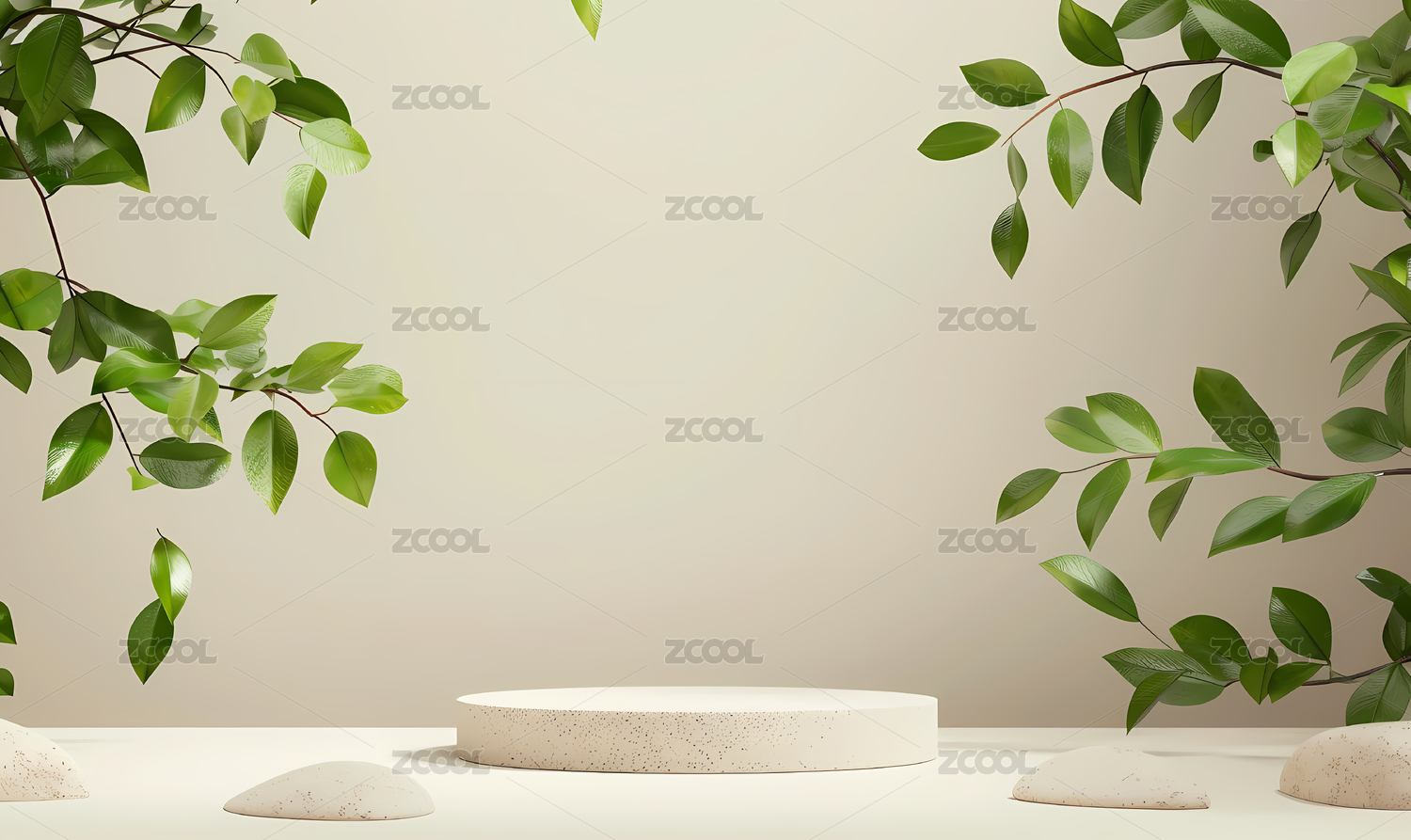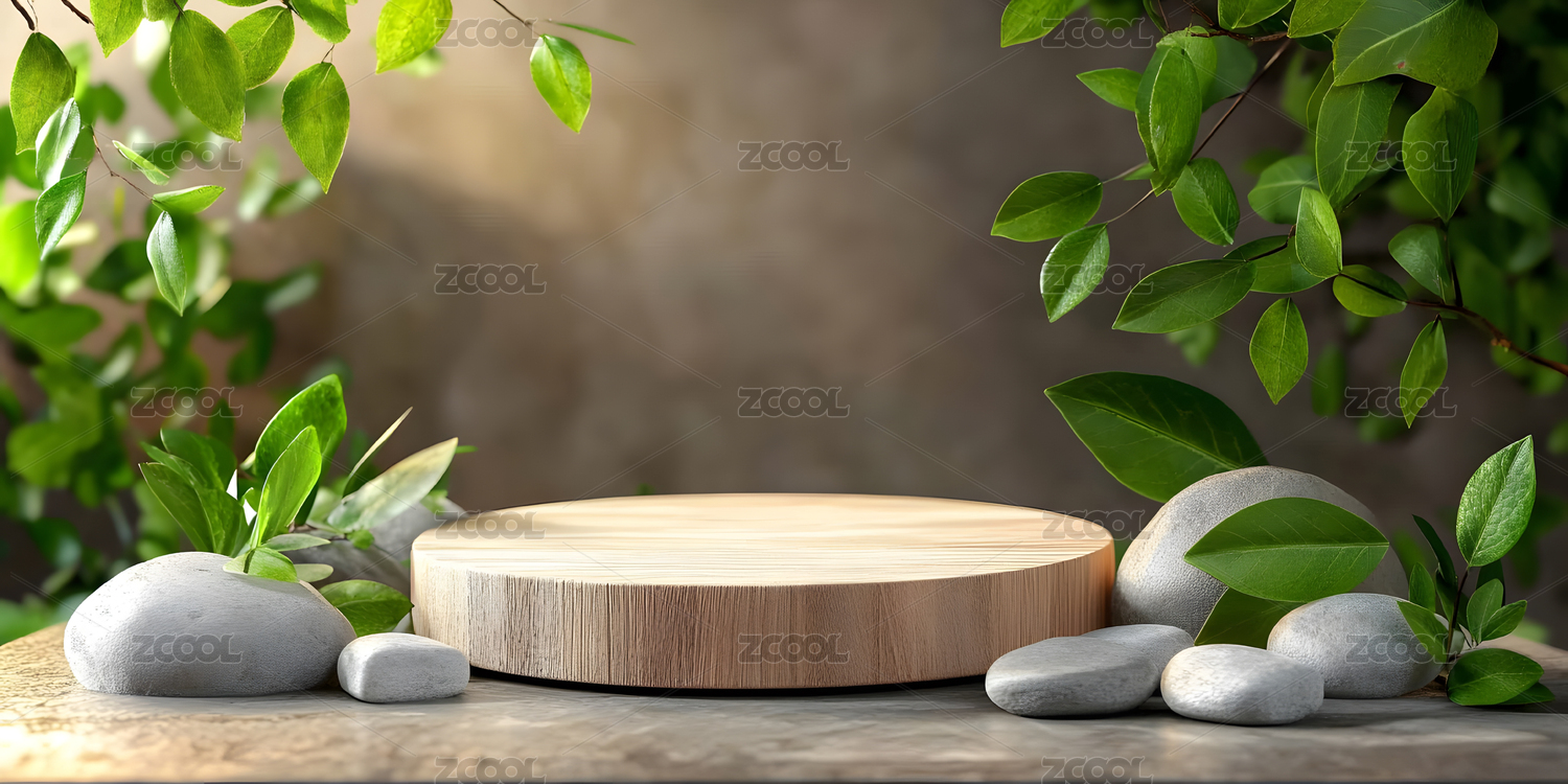 清新,绿叶,自然,圆形,装饰,浅棕色,木板,树枝,简约,温馨