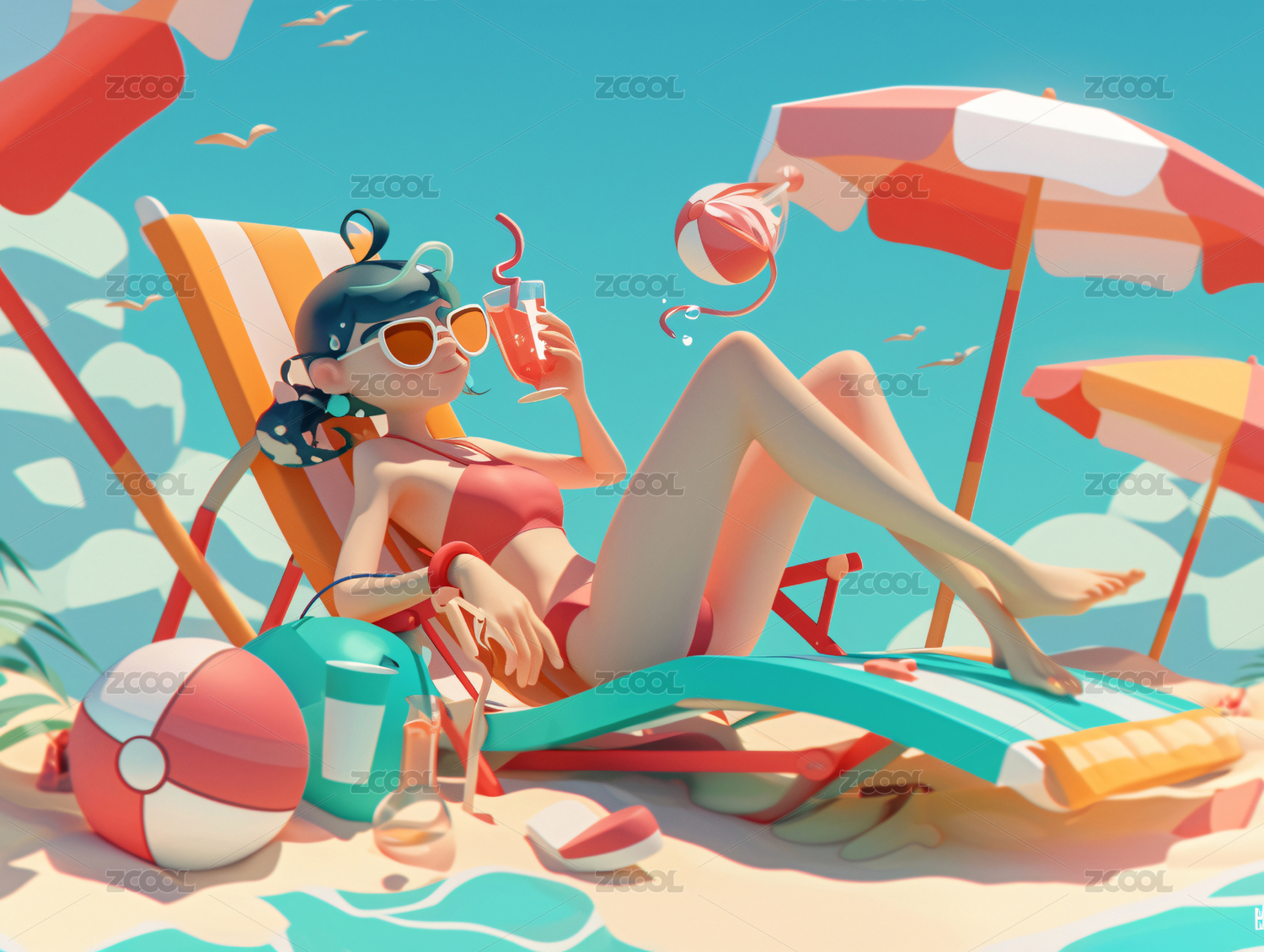 可爱,3d,人物,荷花,荷叶,大暑,小暑,夏日,卡通
