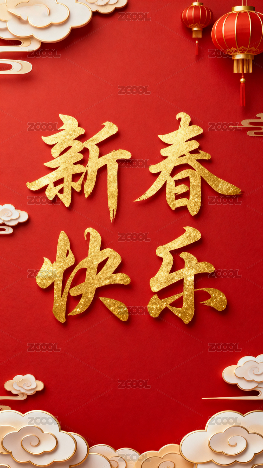 新年快乐,新春快乐,书法字体,中国传统新年,灯笼背景图