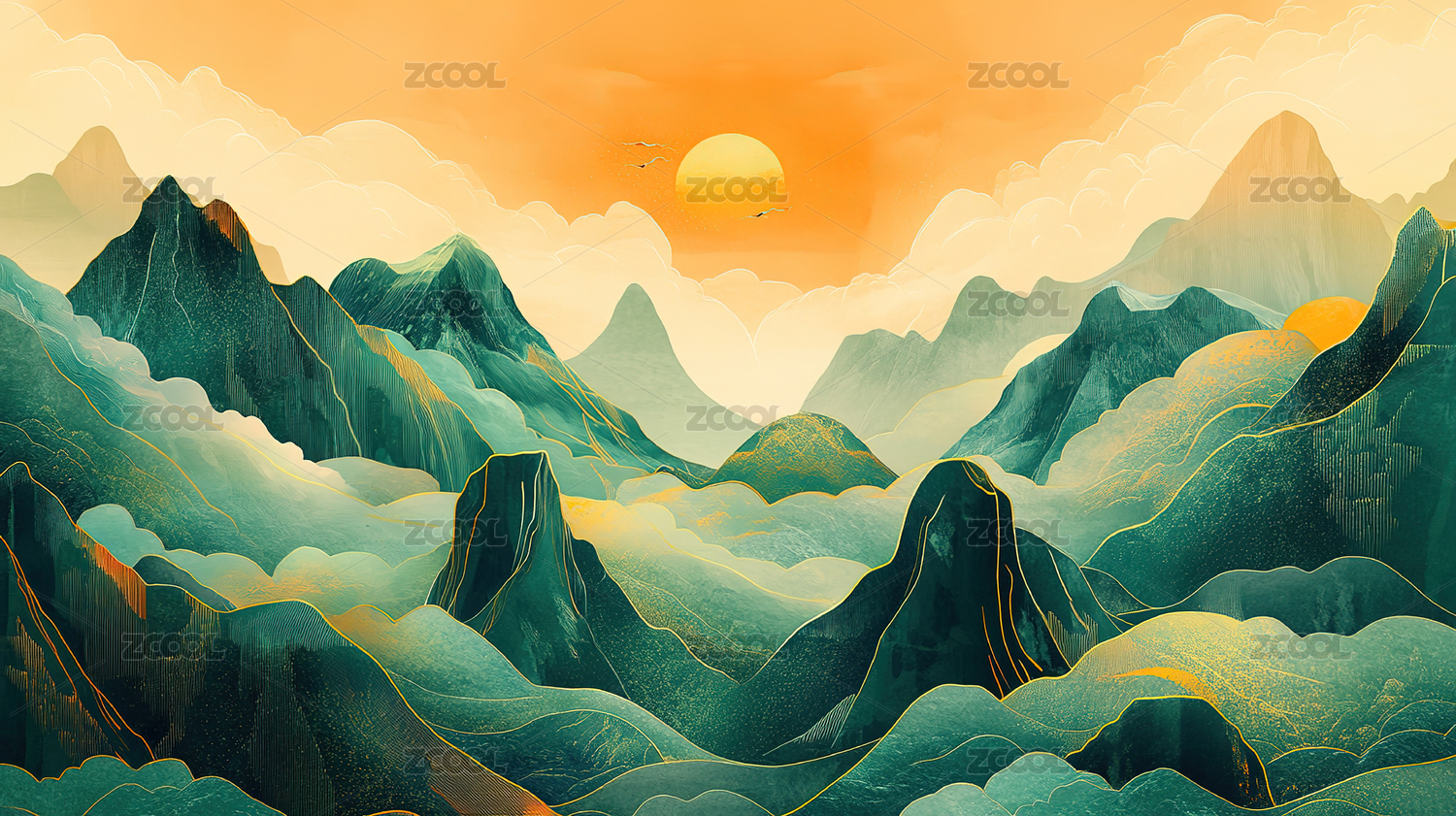 梦幻山峦金色夕阳