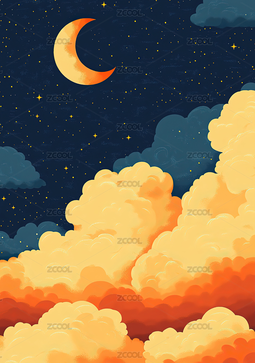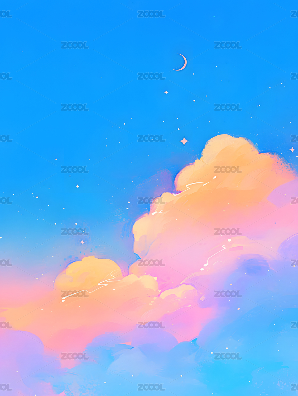 晚霞,云朵,治愈系,天空,温馨,插画,治愈,壁纸,封面