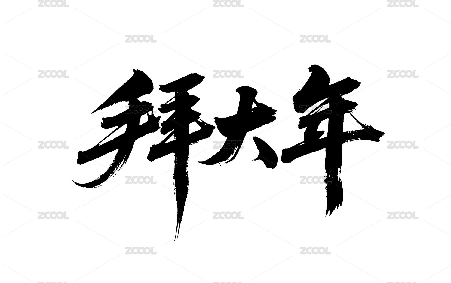 拜大年矢量书法手写毛笔字