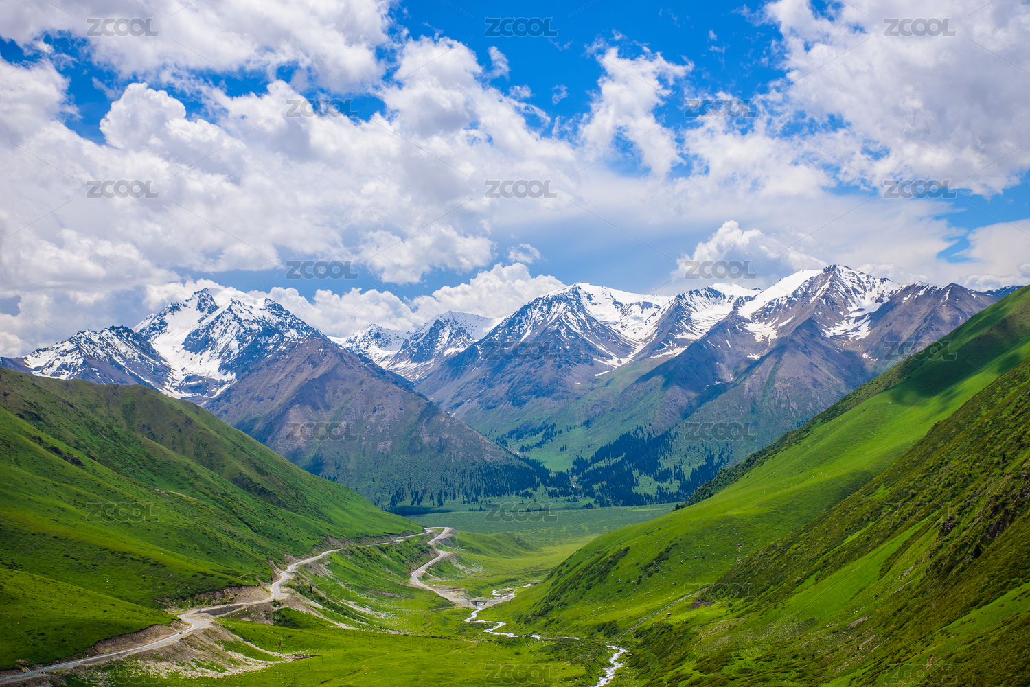 中国新疆独库公路沿线雨后云雾缭绕高山景观