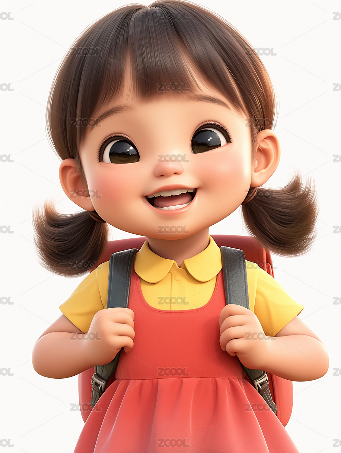 女孩,可爱,卡通,动画,快乐,微笑,3d,肖像,头像,儿童