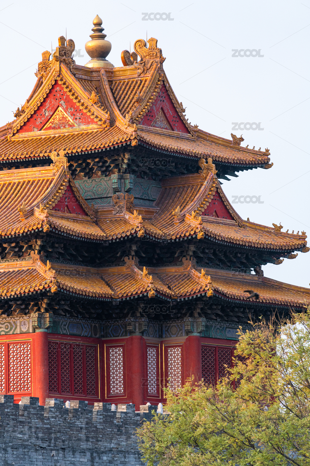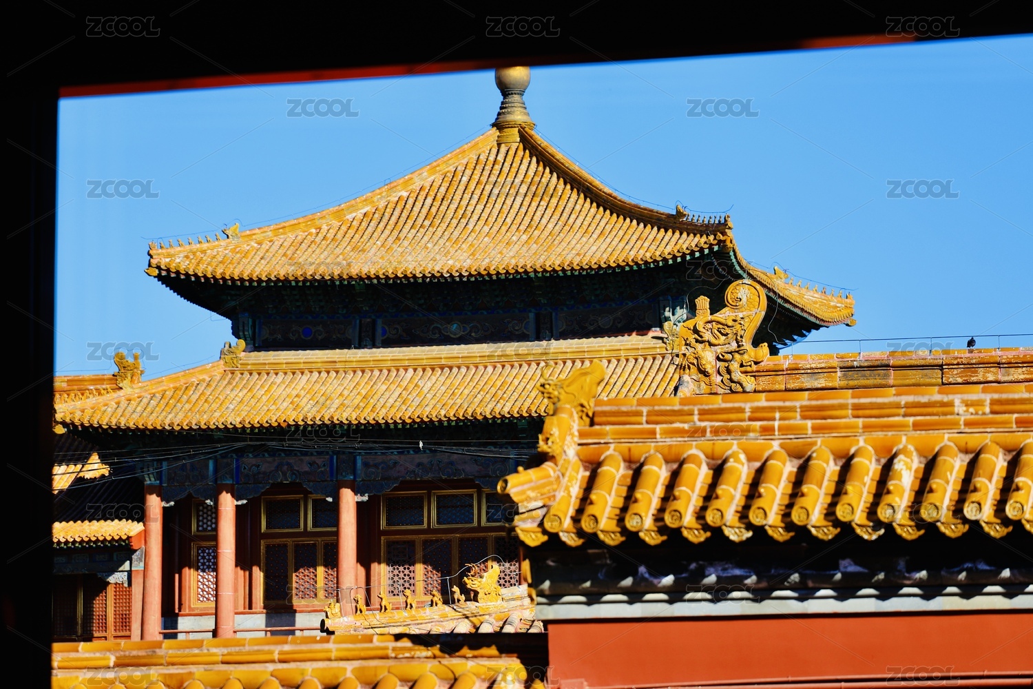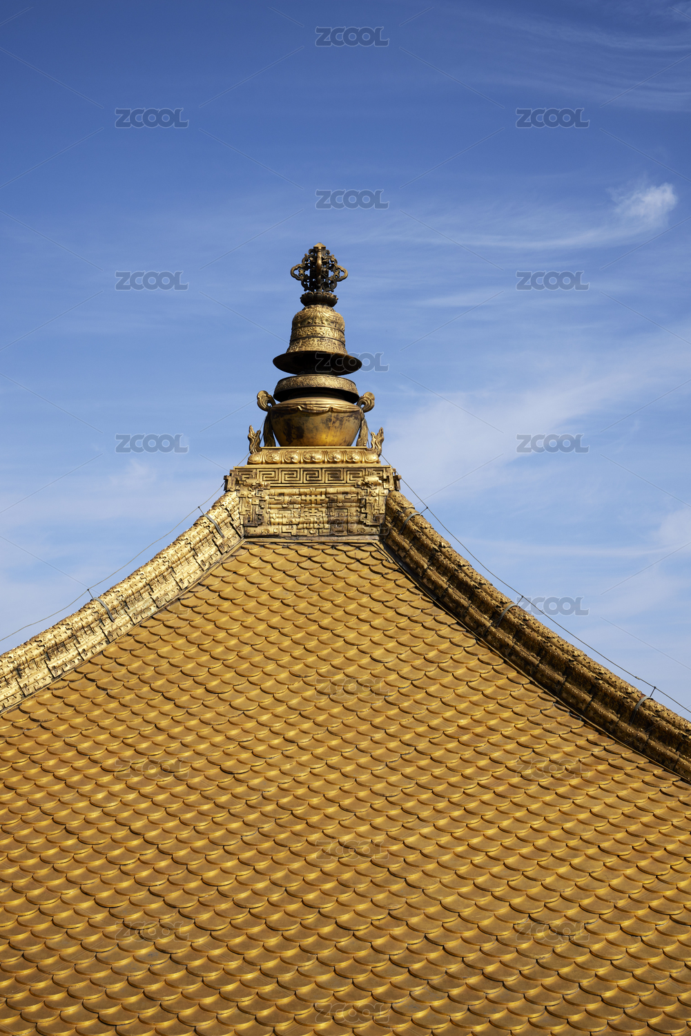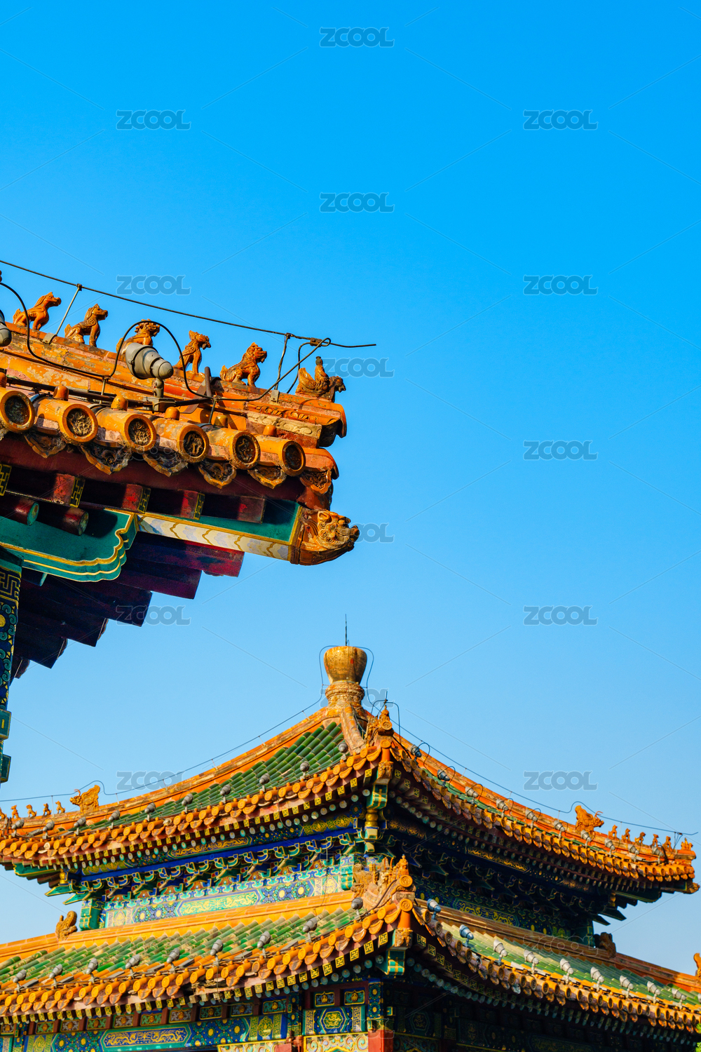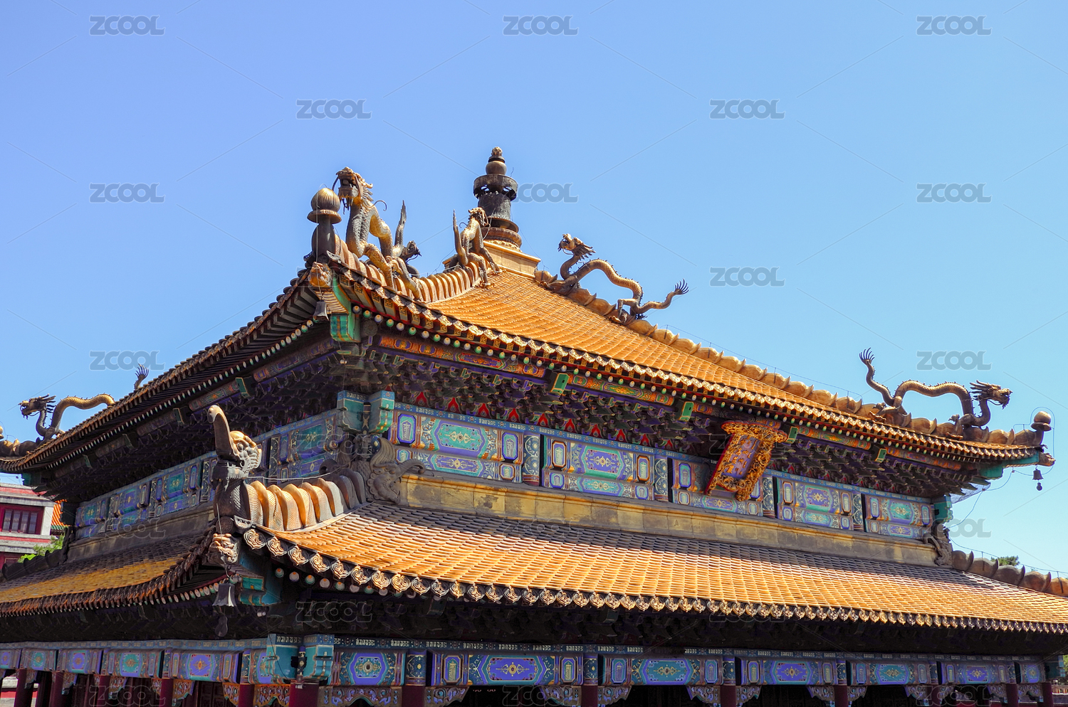 承德寺庙顶部龙与瓦片,雕花,脊兽