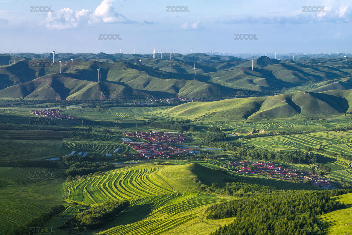 坝上的风电和田地