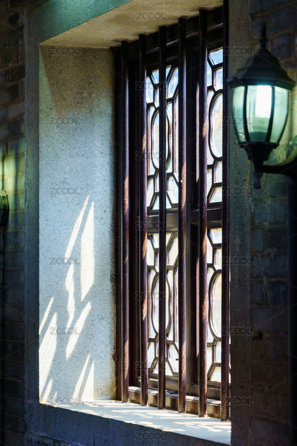 老上海砖墙建筑欧式拱形玻璃窗特写