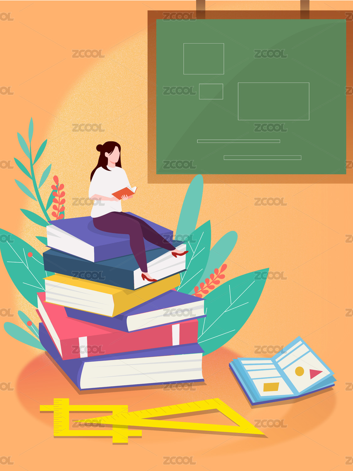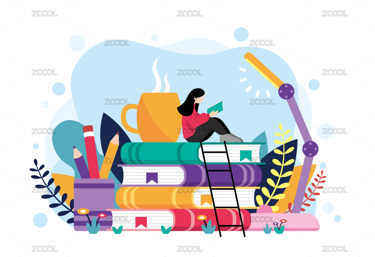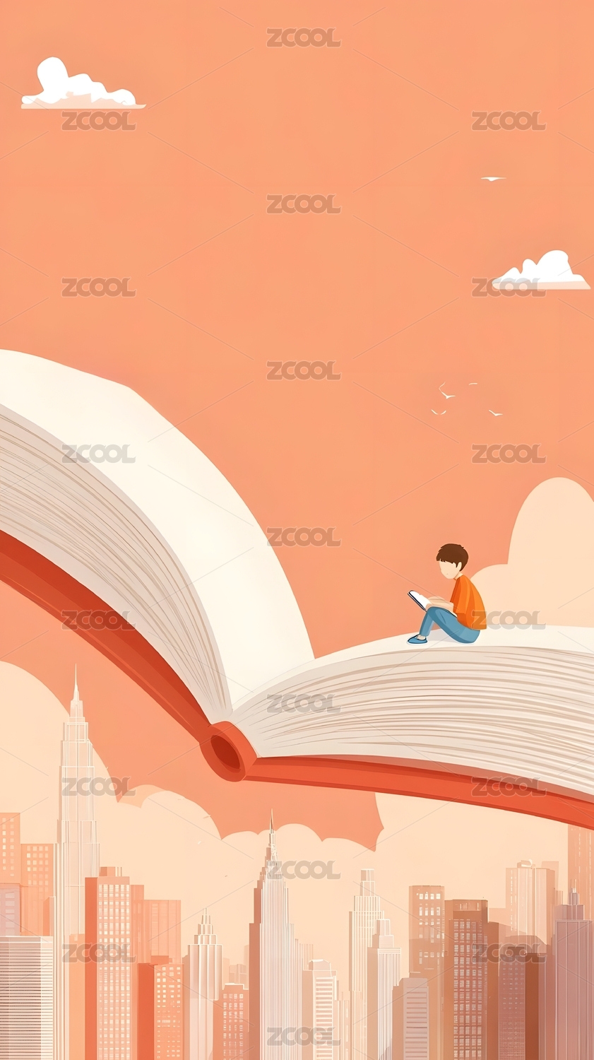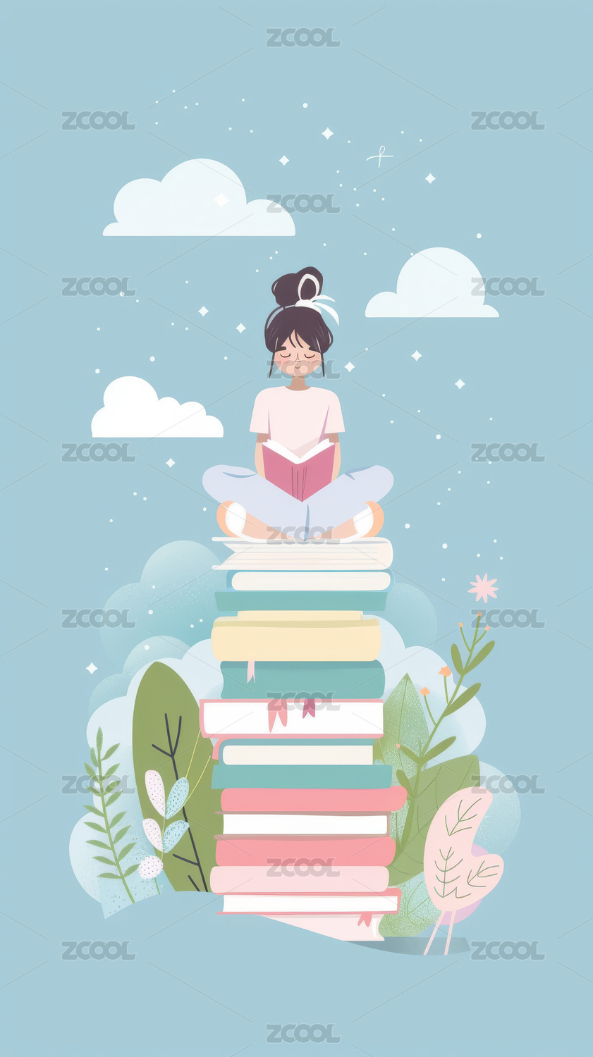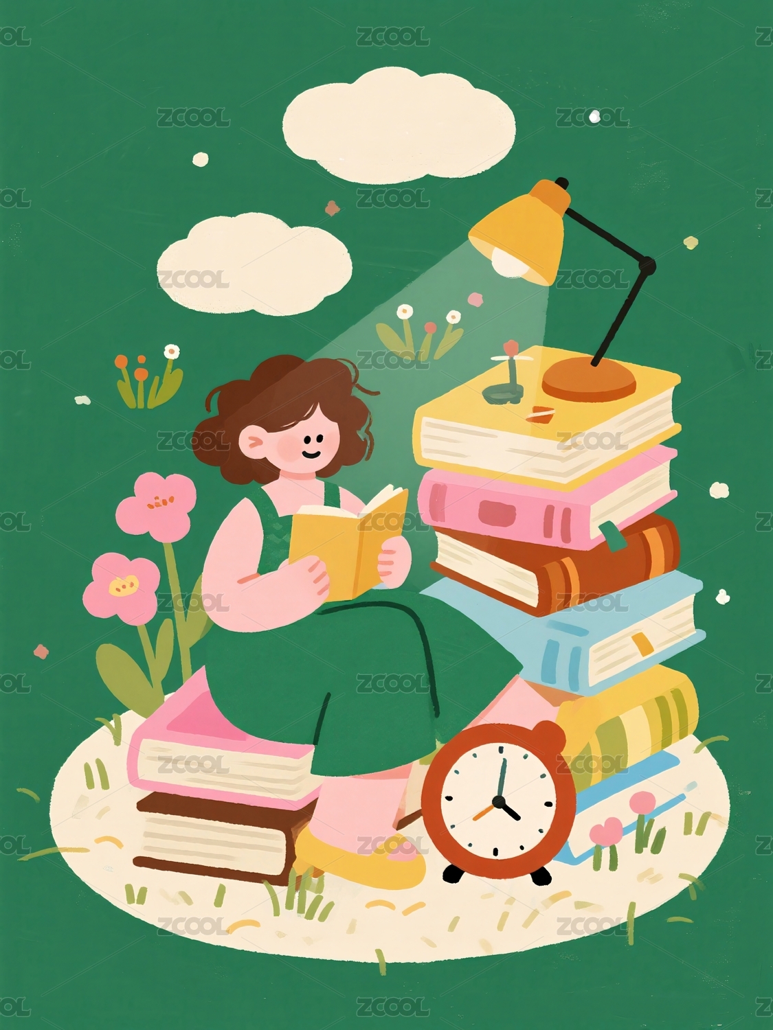 书本,读书,人物,场景,插画,爱阅读,靠着,坐着,想象,生活