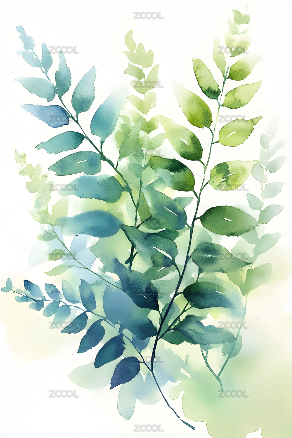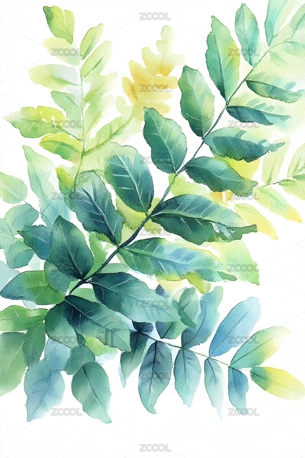 高清水彩手绘树叶