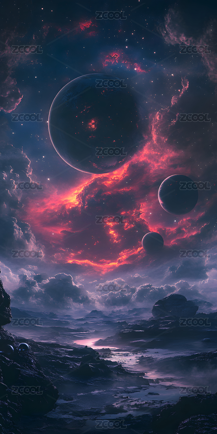 梦幻,超现实,天空,星空,夜晚,唯美,人物,背影,剪影,地形
