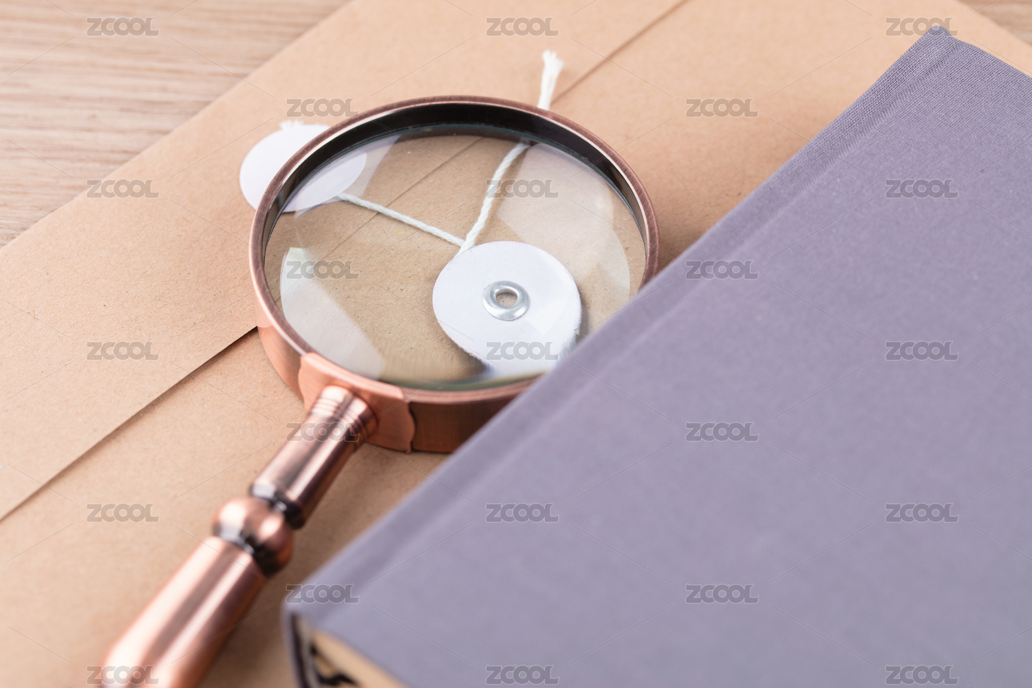 放大镜在书籍上书籍在文件袋上