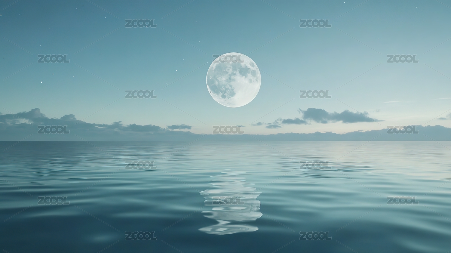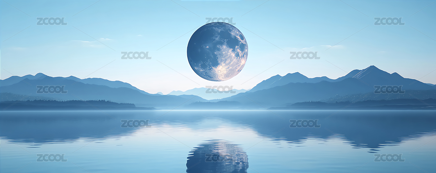 夜晚山水湖面明月倒影自然风光3D中秋场景