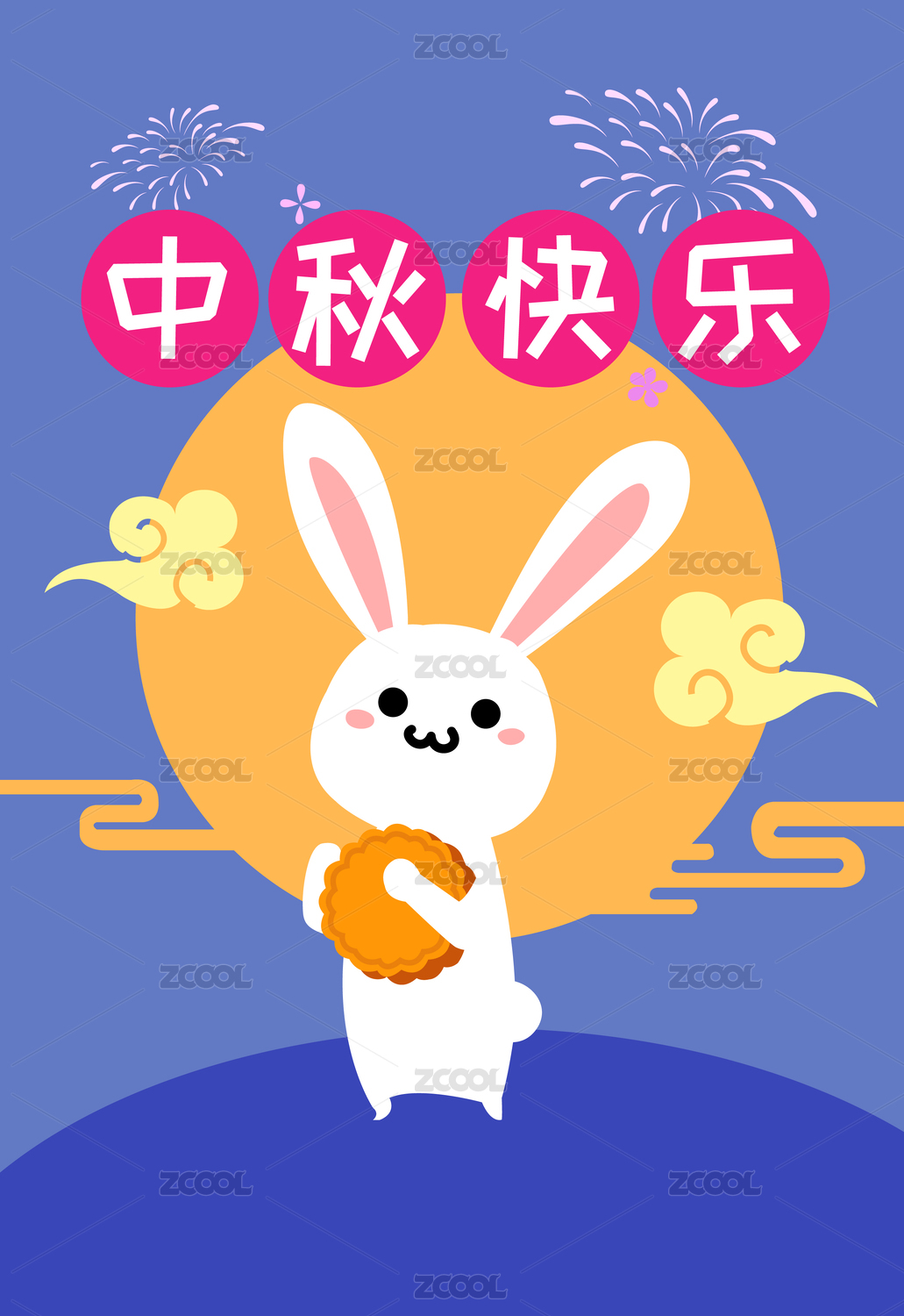 中秋,中秋节,节日,嫦娥,月,兔,兔子,月饼,插画,插图