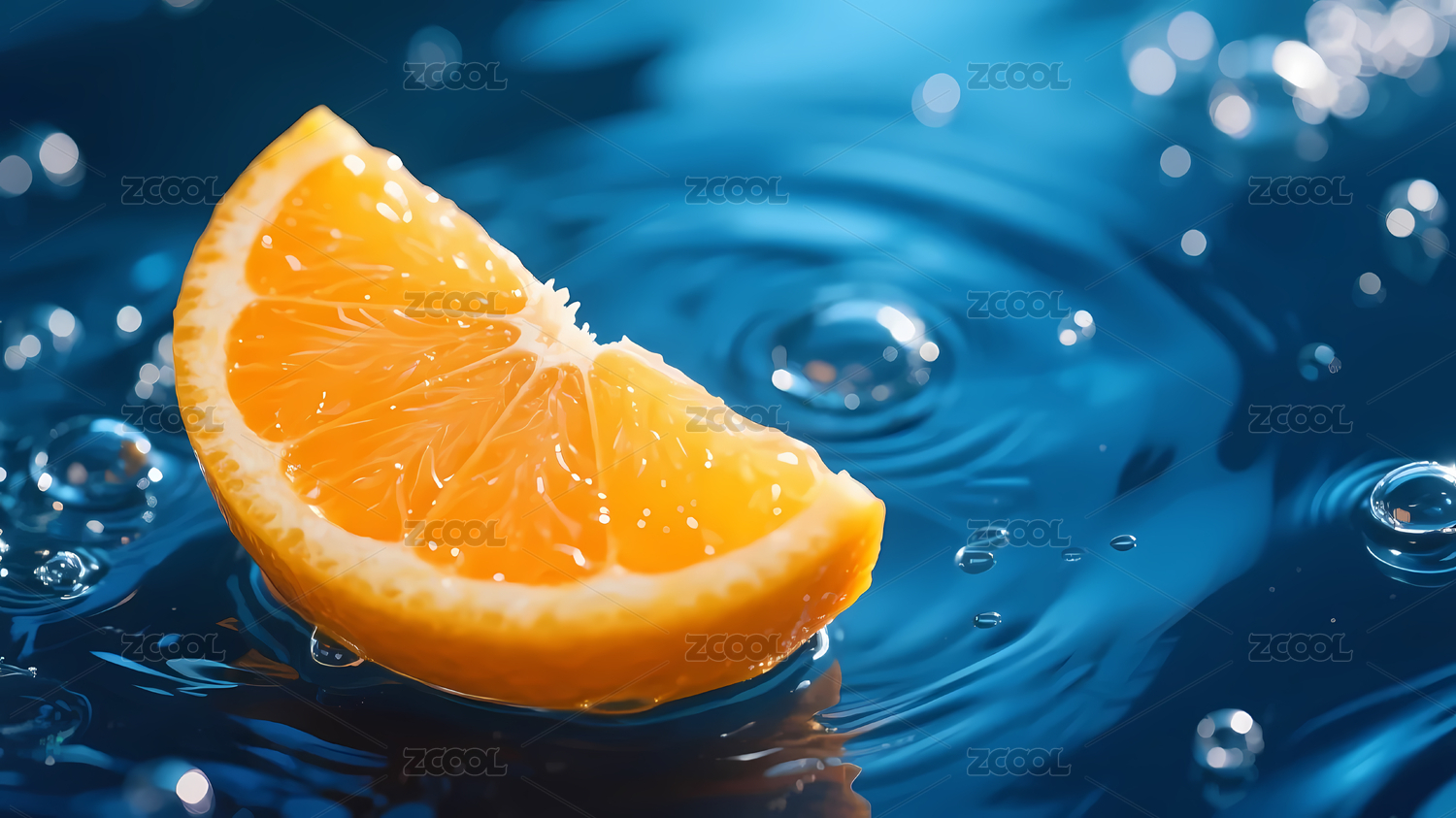 蓝色波纹气泡衬托橙片