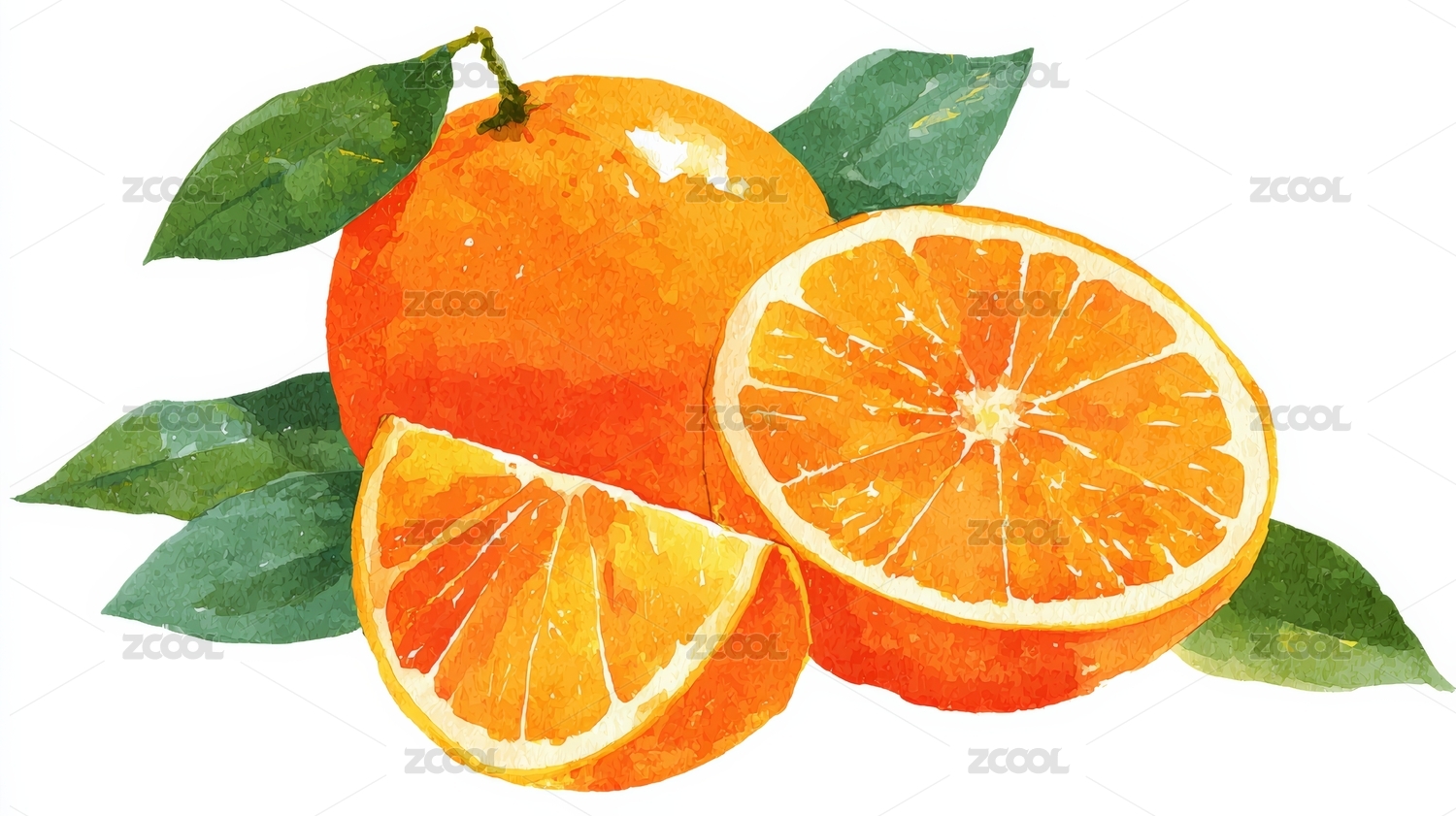 水彩风格的橙子插画