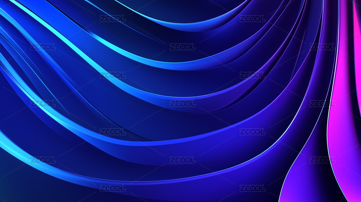 蓝紫色渐变波浪线条,动感光影曲线背景