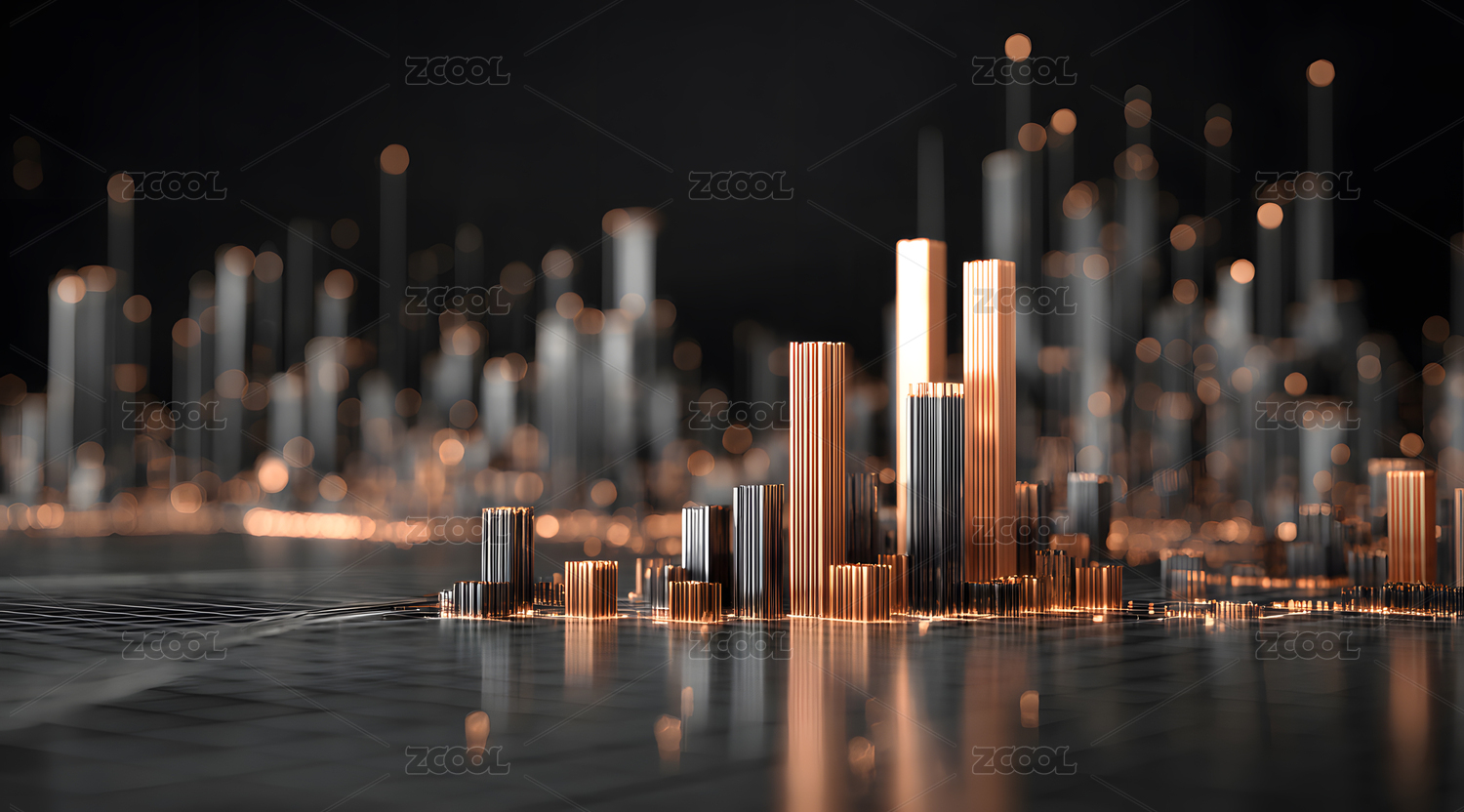 科技感柱状图构成的金融城市