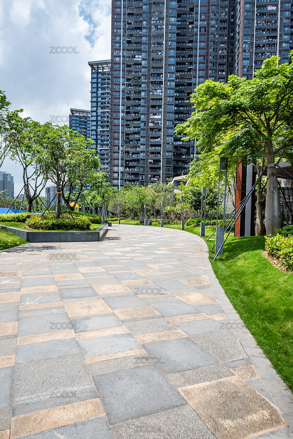 中国深圳市龙华区红山街道城市楼盘小区花园风景