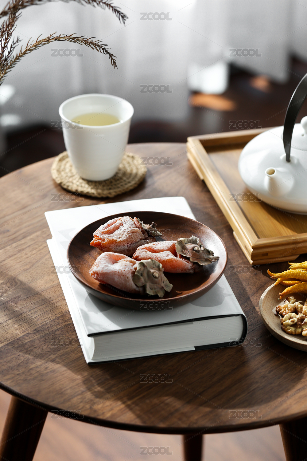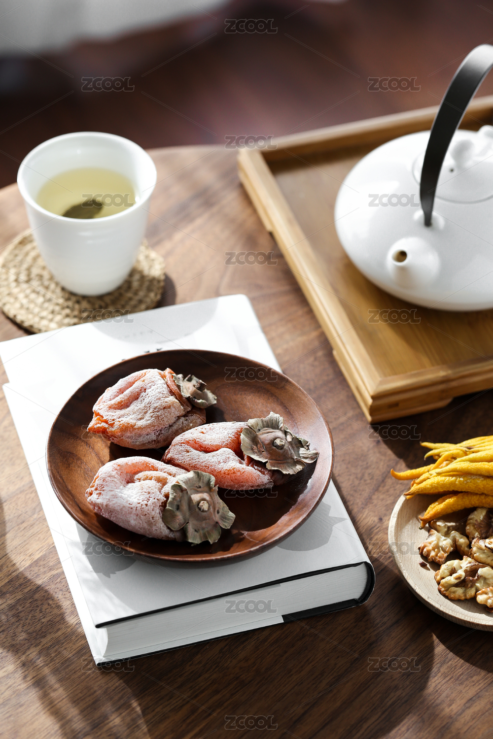 手拿着茶具的铁观音和富平柿饼的中式下午茶