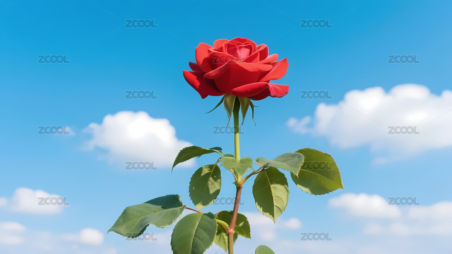 蓝天,白云,山茶花,花,花瓣,特写,云,红色,蓝色,绿叶