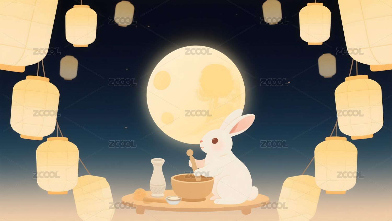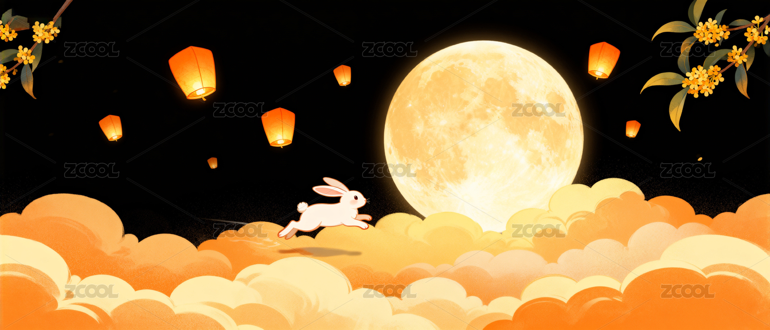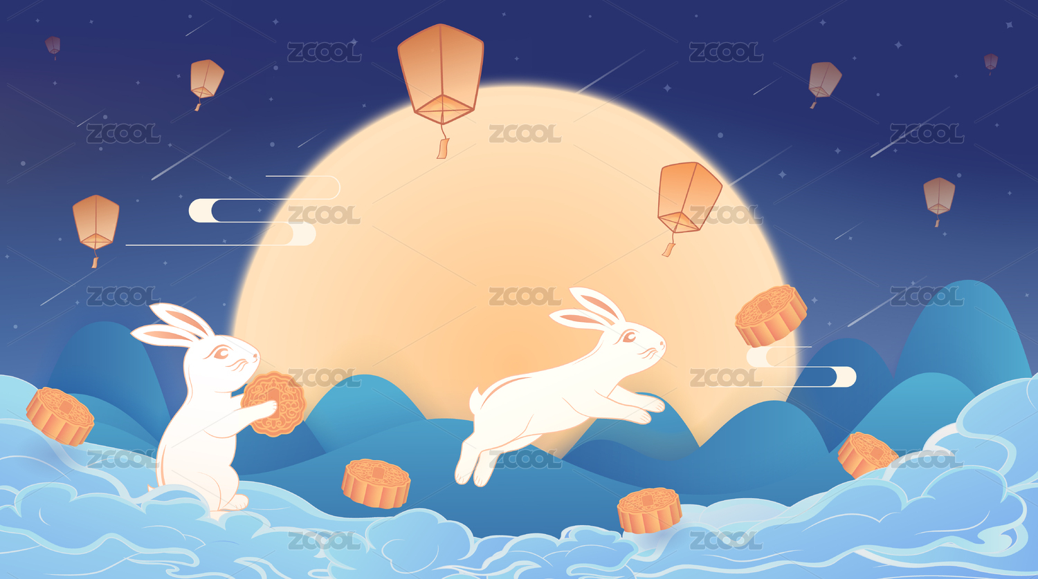 中秋,玉兔,月亮,孔明灯,国风,日落