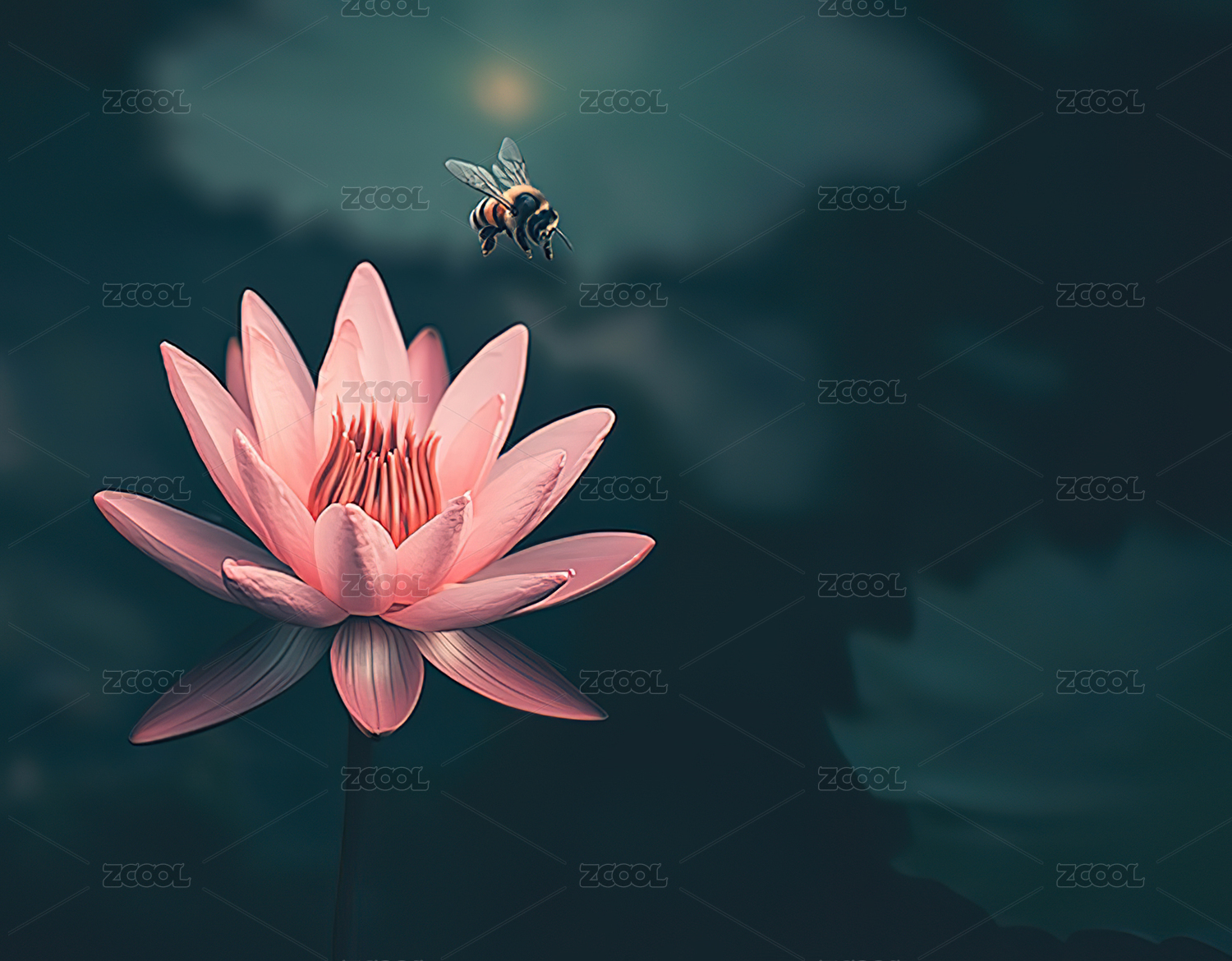 夏天荷花莲花清新自然大暑节气AI数字艺术