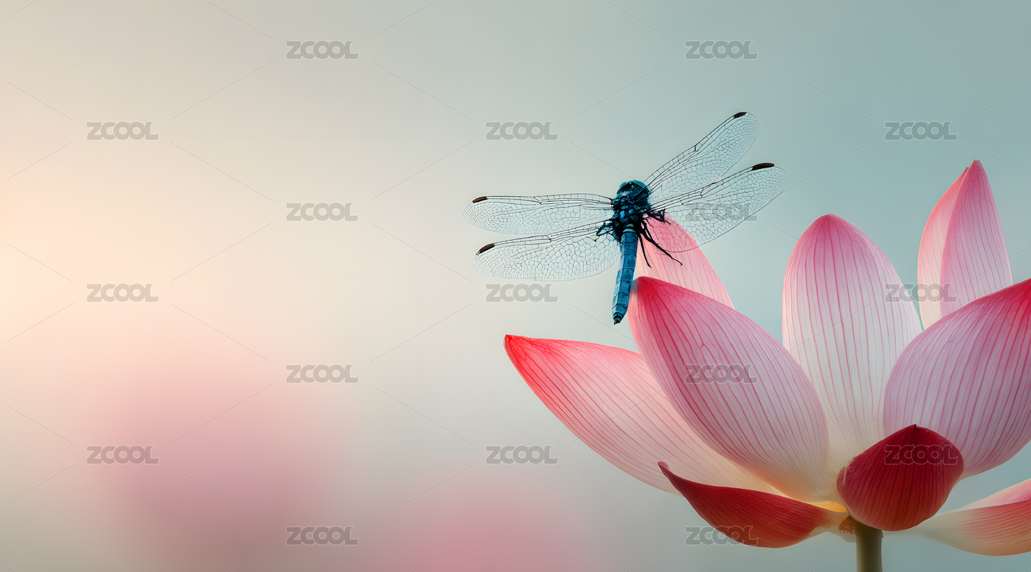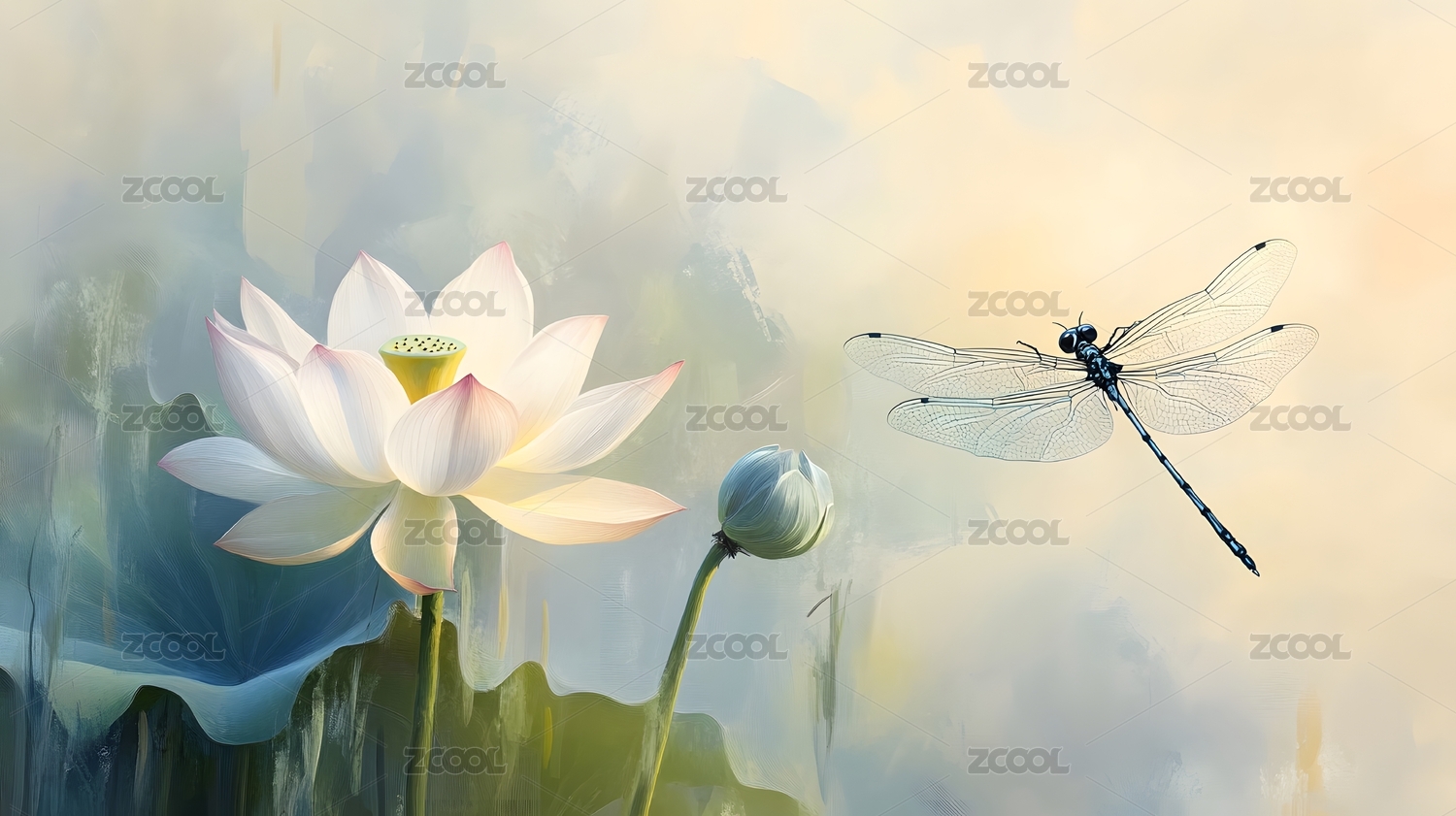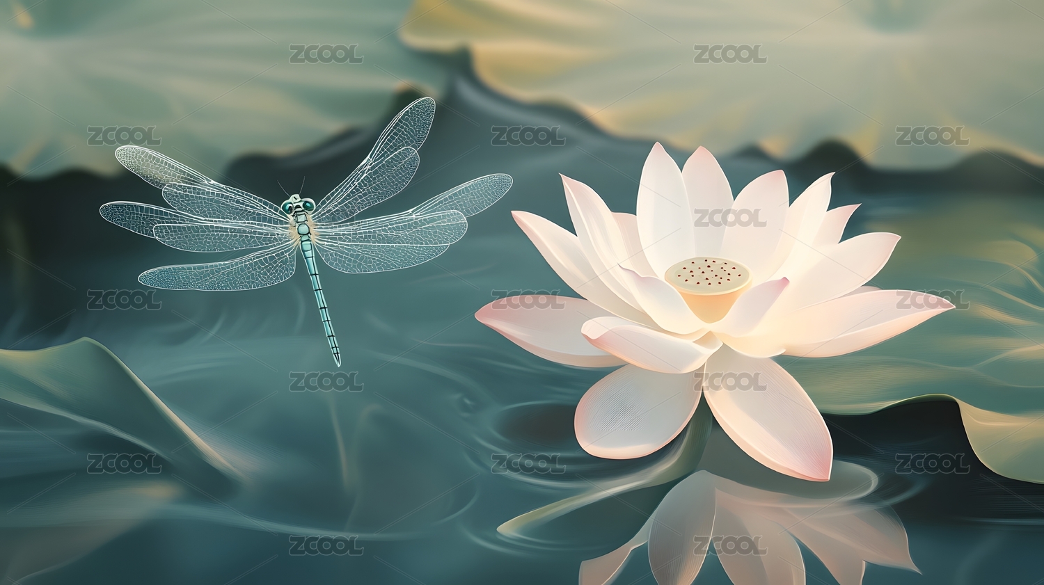 莲花蜻蜓静谧意境
