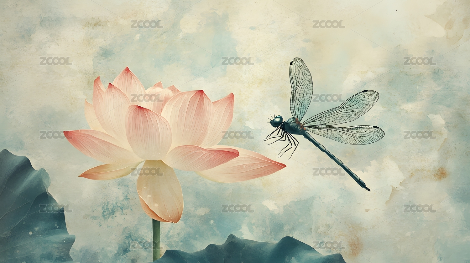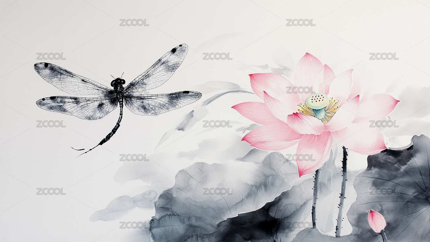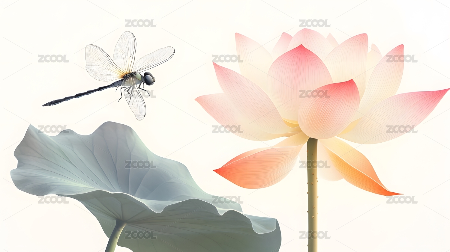 莲花蜻蜓静谧意境
