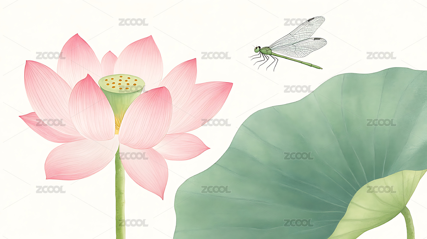 蜻蜓荷花插画
