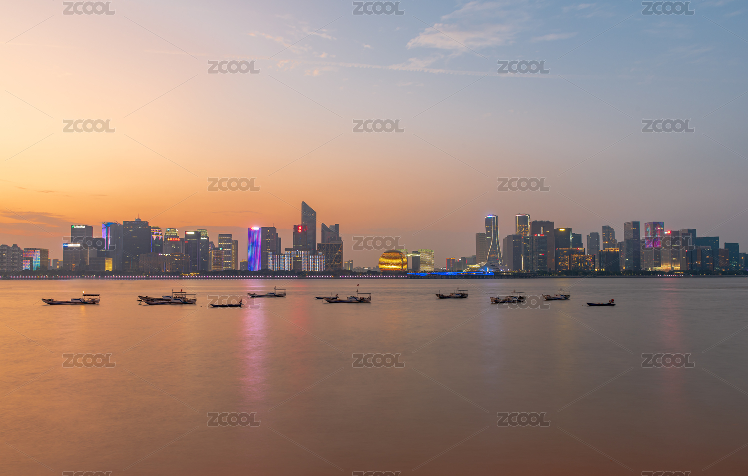 浙江省杭州市钱塘江滨江两岸夕阳风光
