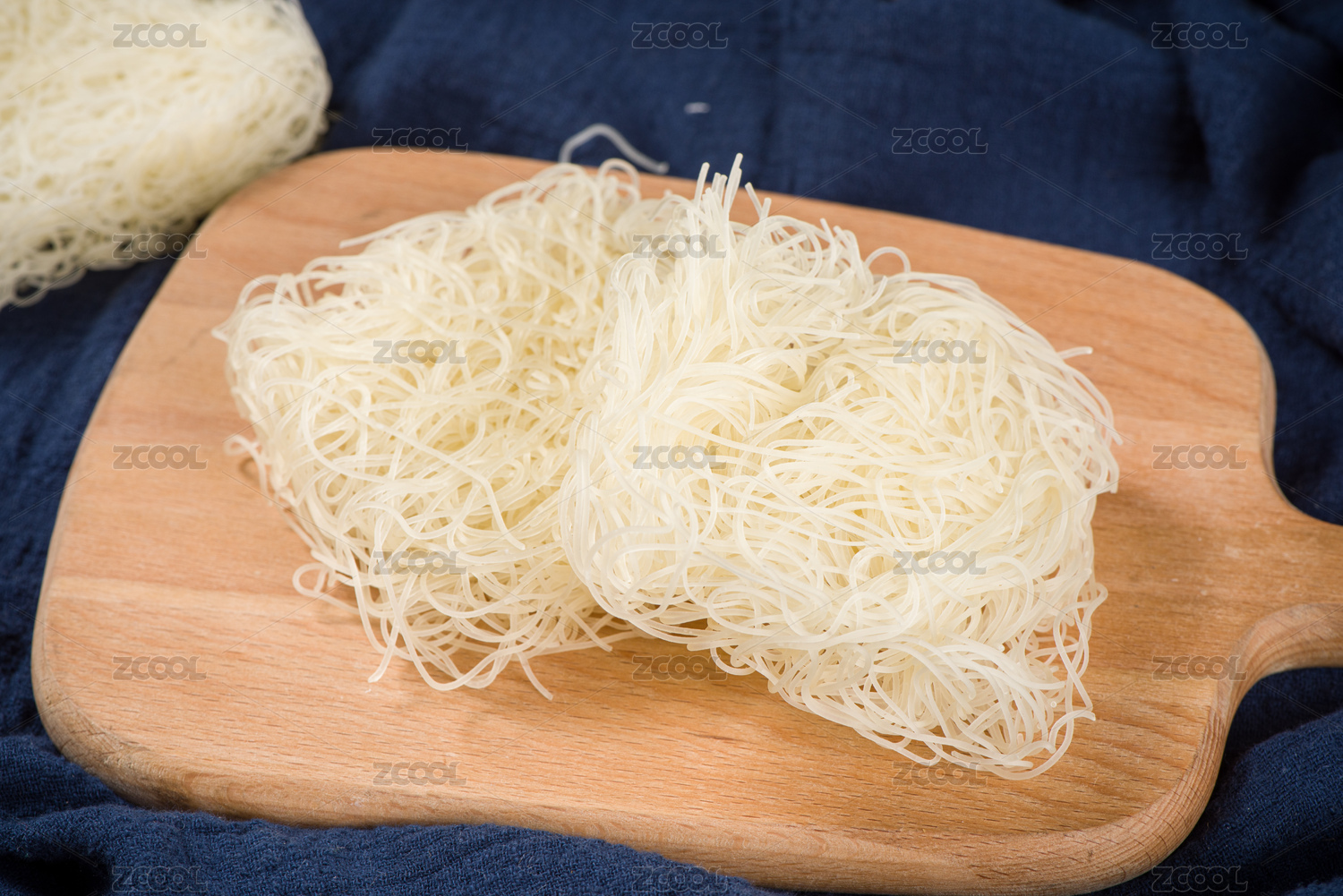 木纹背景上摆放的晒干粉条