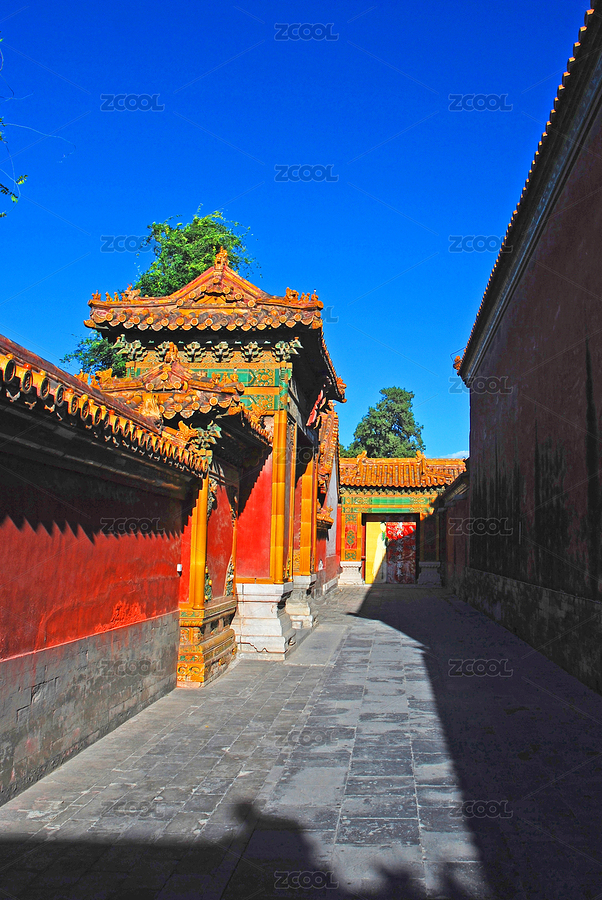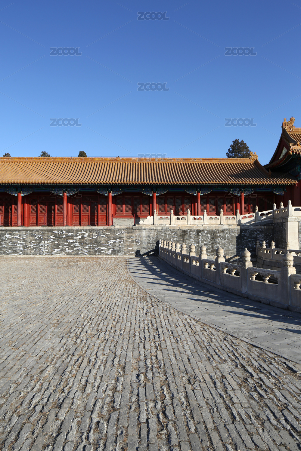 晴朗的蓝天下中国北京故宫博物院宫殿一角