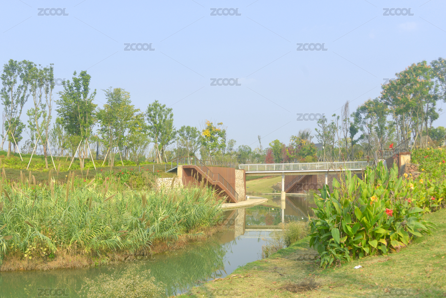 中国四川成都兴隆湖小桥及彩色透水混凝土健步道