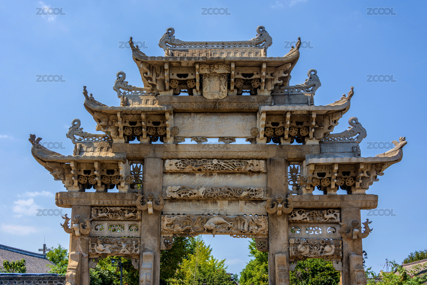 中国山东青岛即墨古城中和楼墨邑重华牌坊