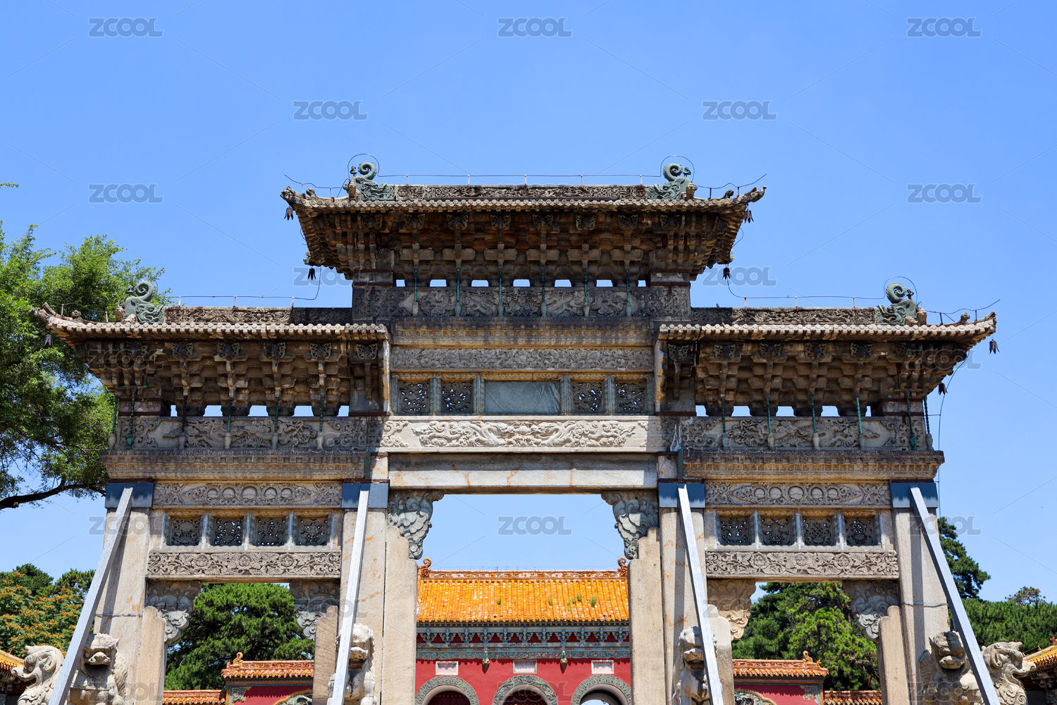 中国河北省遵化市清东陵景区石牌坊园林建筑