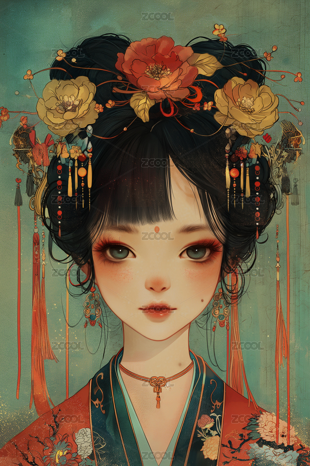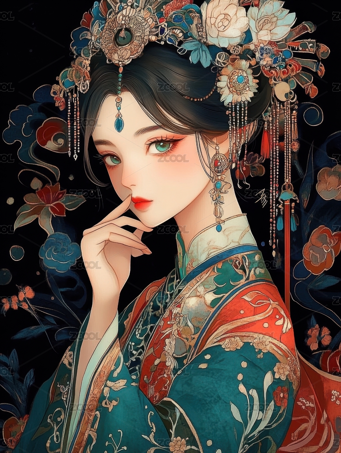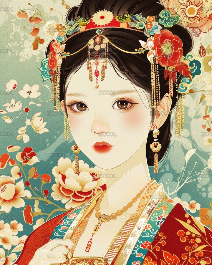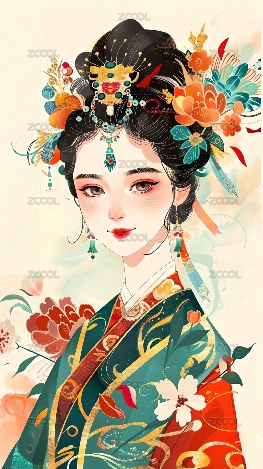 戴精美头饰的古风美女插画