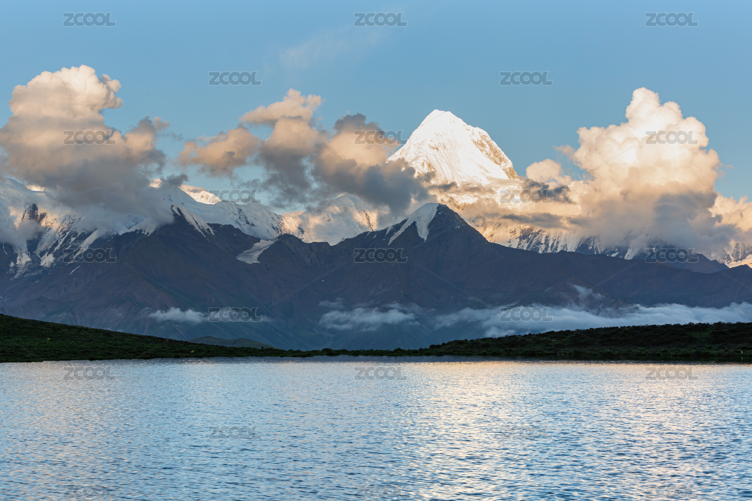 中国四川甘孜藏族自治州斯丁措雪山湖泊蓝天