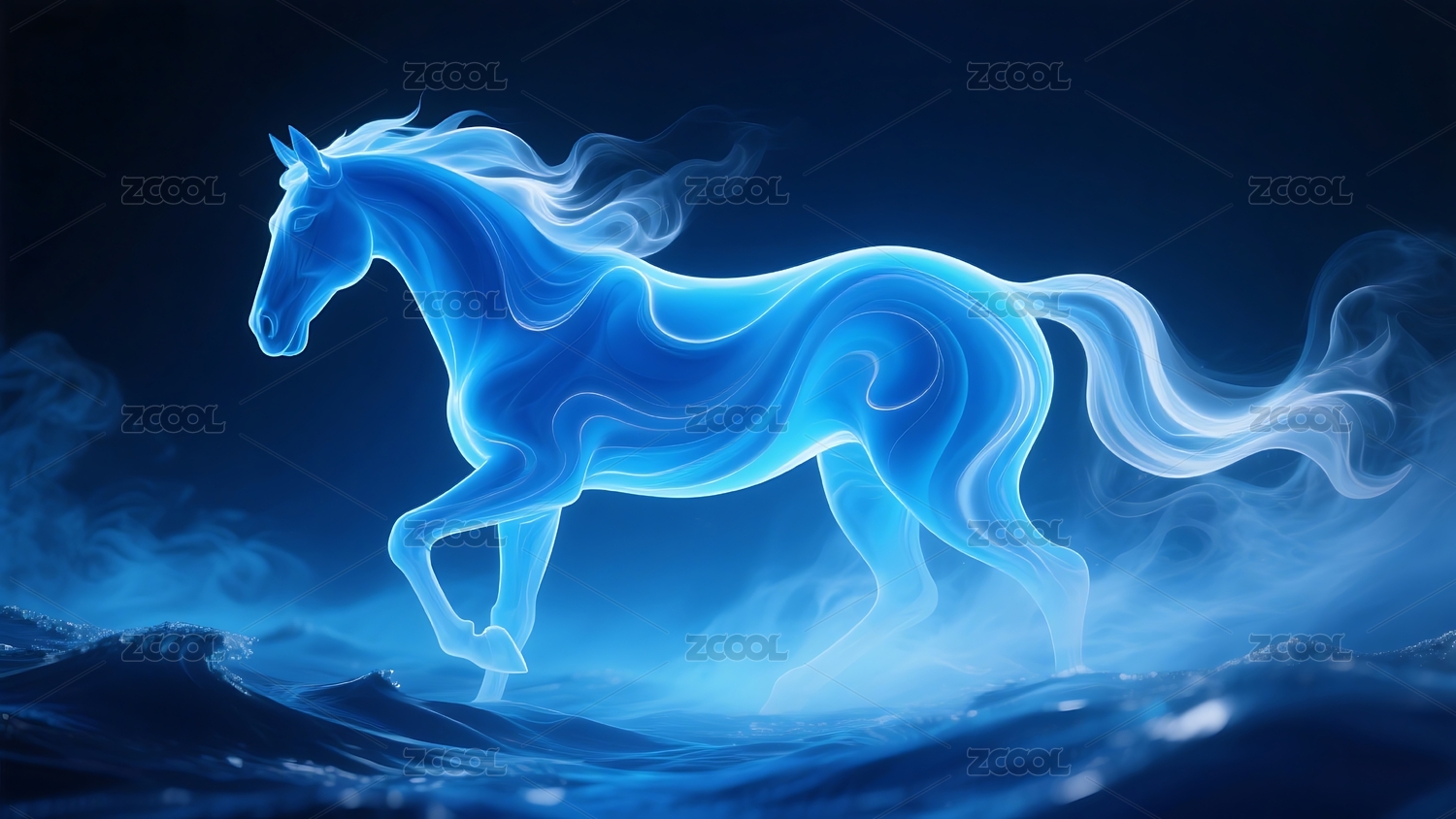梦幻蓝色发光骏马
