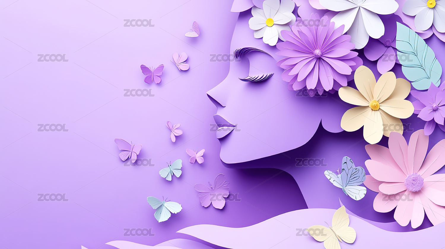 背景,女性,蝴蝶,粉色,剪纸,艺术,创意,唯美,优雅,浪漫