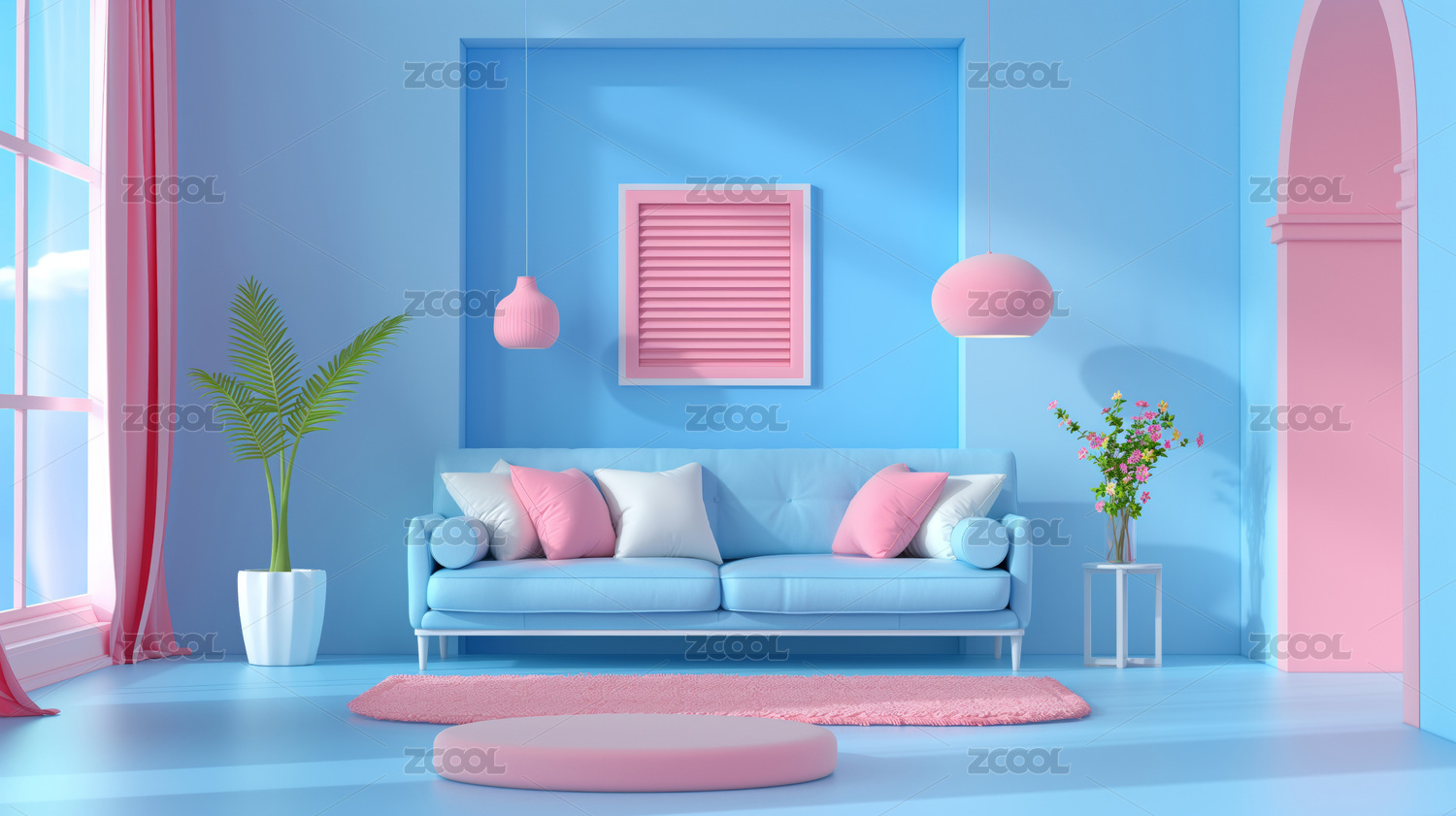 客厅,3d,卡通,沙发,窗户,住宅内部,无人,样板间,家具,现代
