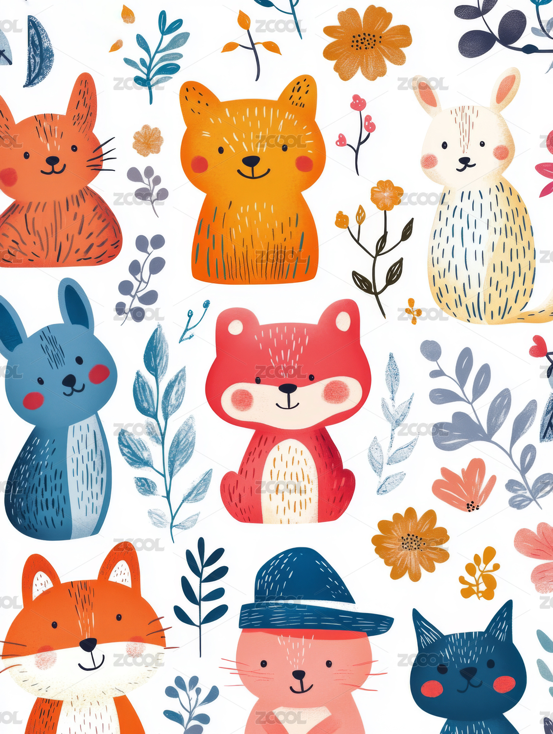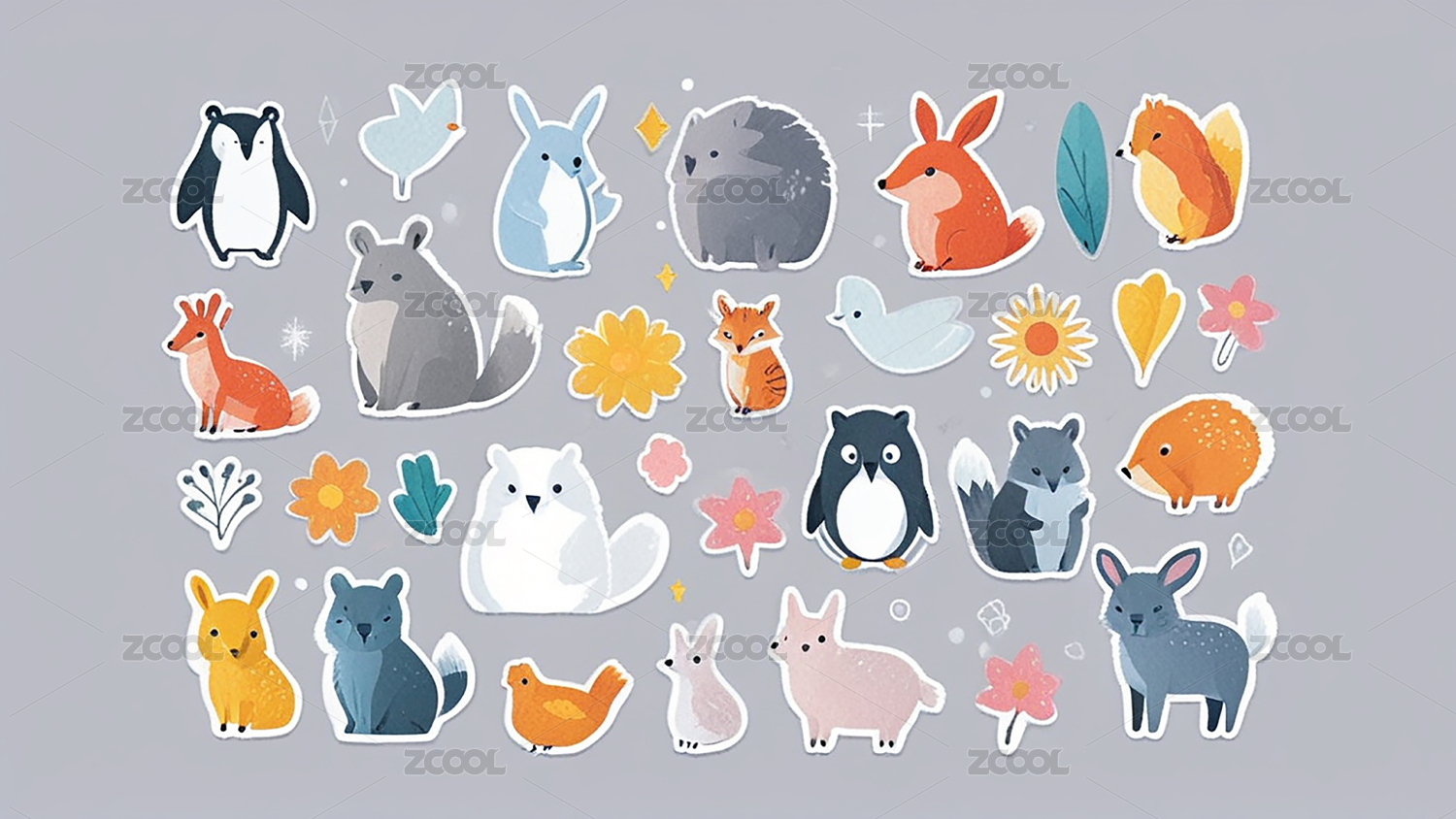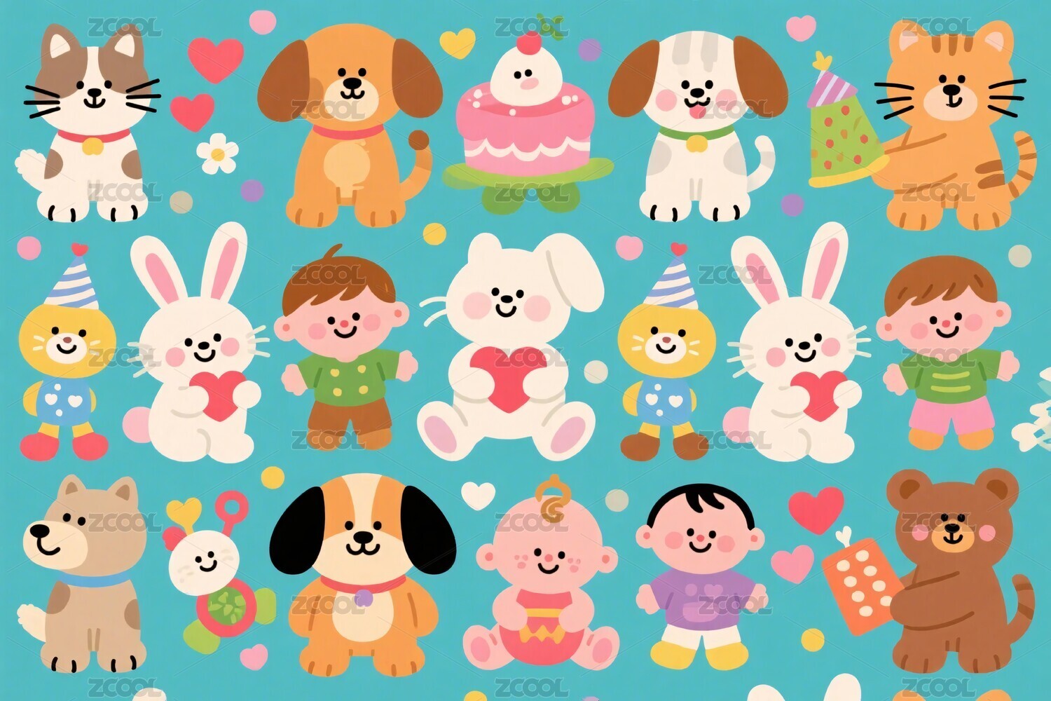 十二生肖的小动物齐聚和小女孩-治愈插画