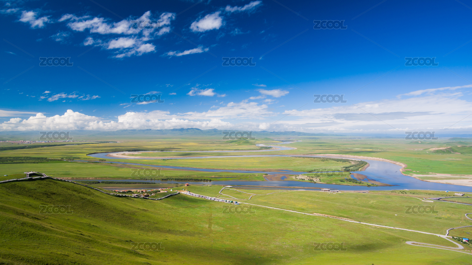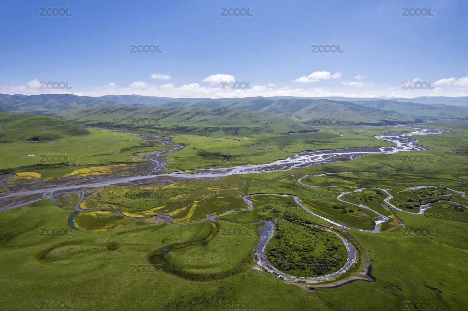 甘肃甘南黄河大草原玛曲阿万仓湿地蜿蜒河流