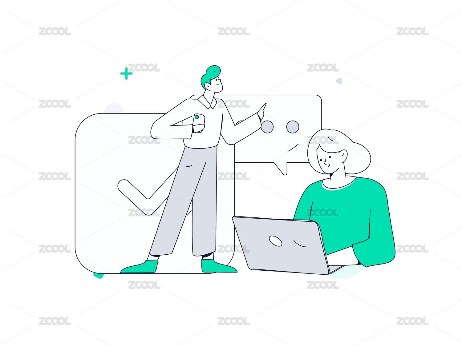 虚拟的人物社交沟通概念商业扁平矢量手绘插