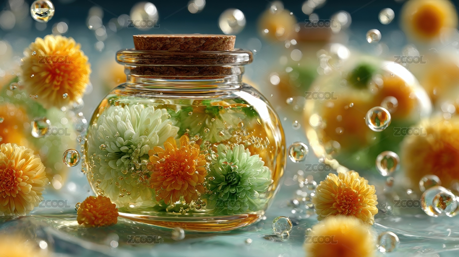 AIGC202402,美妆,护肤品,鲜花,花,展示台,水