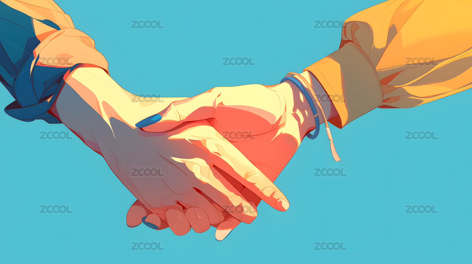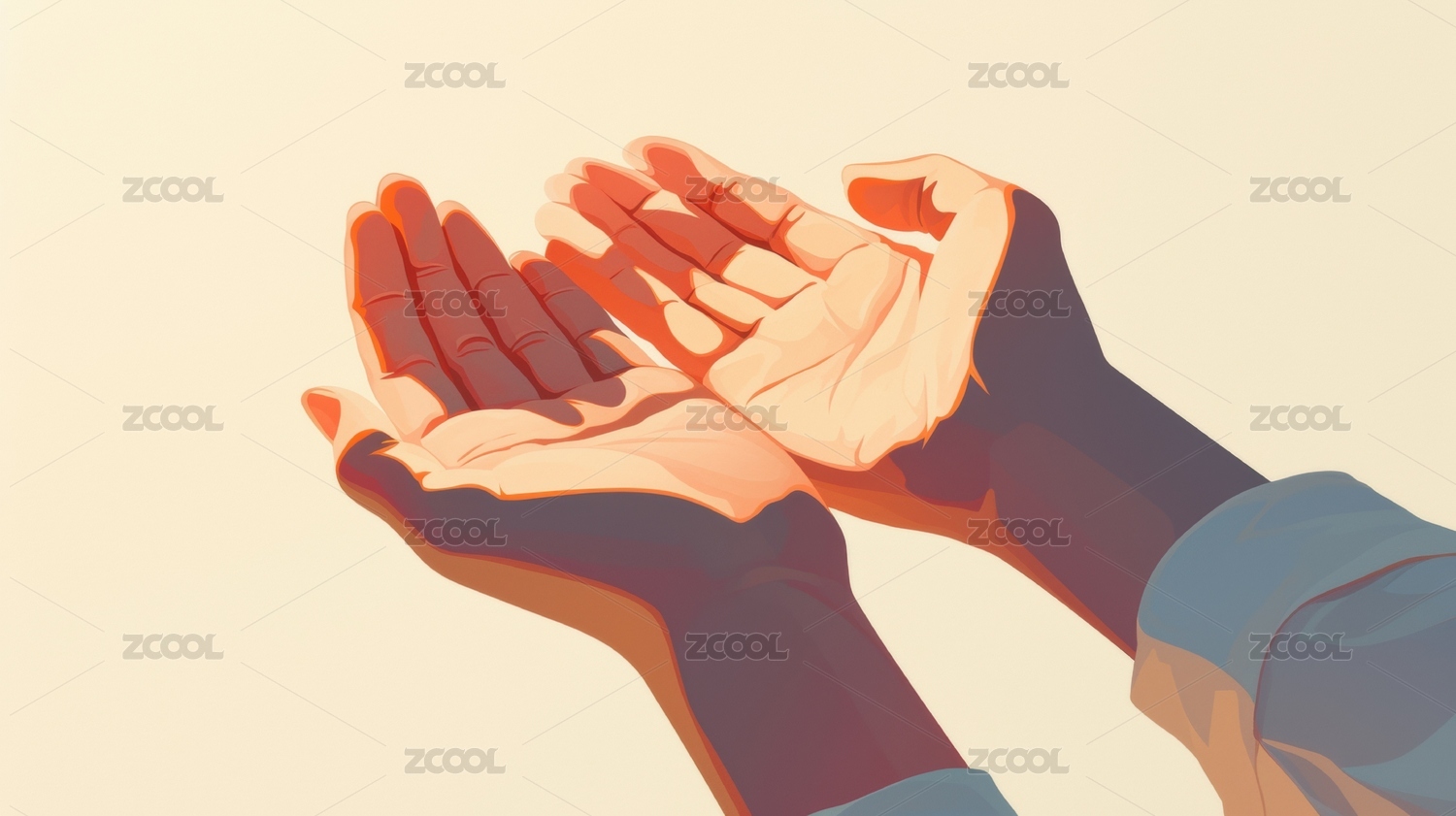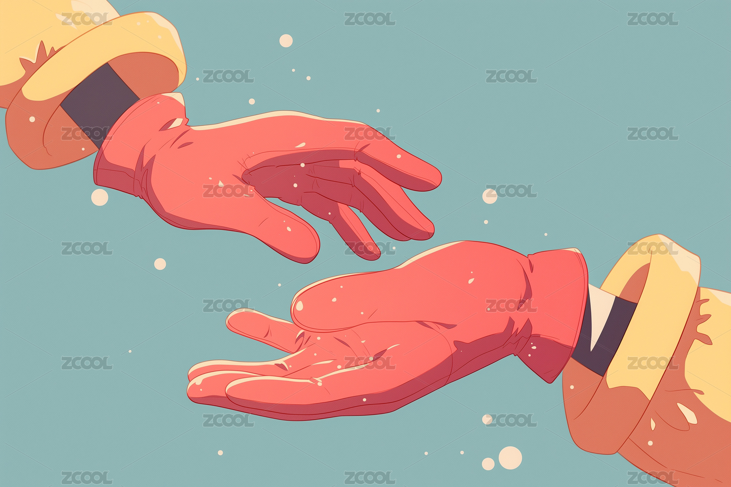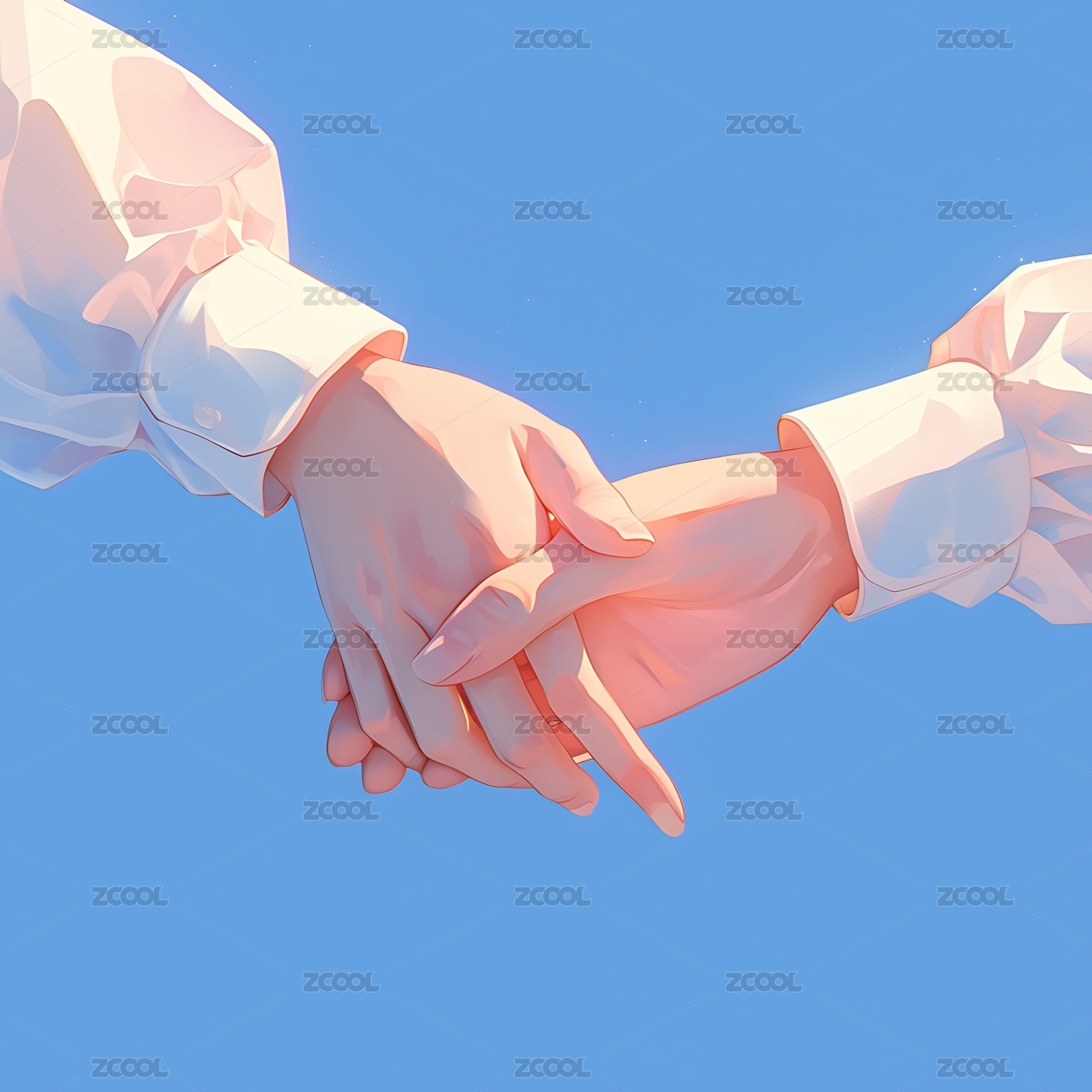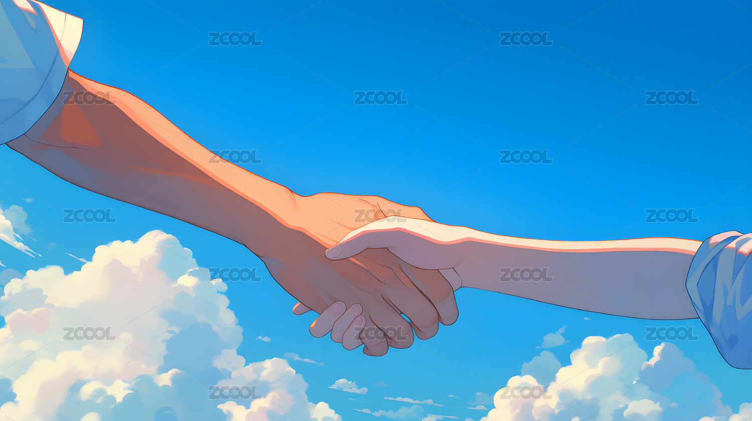 手绘动漫风两只手触摸比爱心空白背景壁纸
