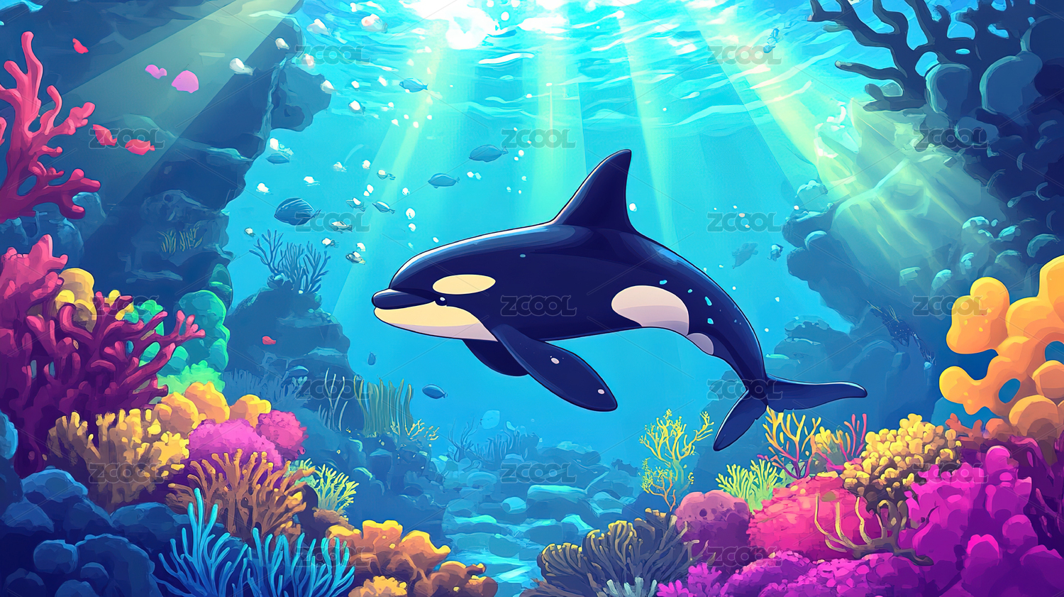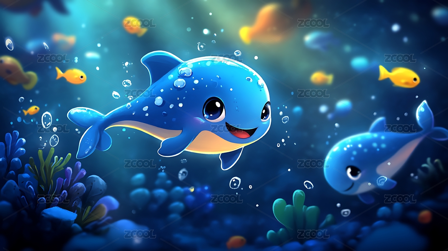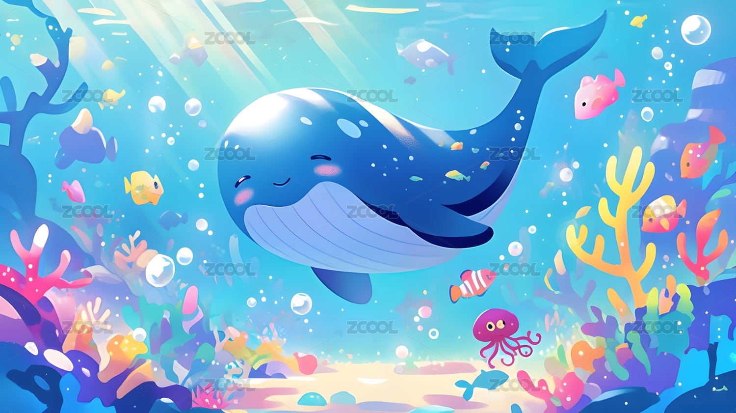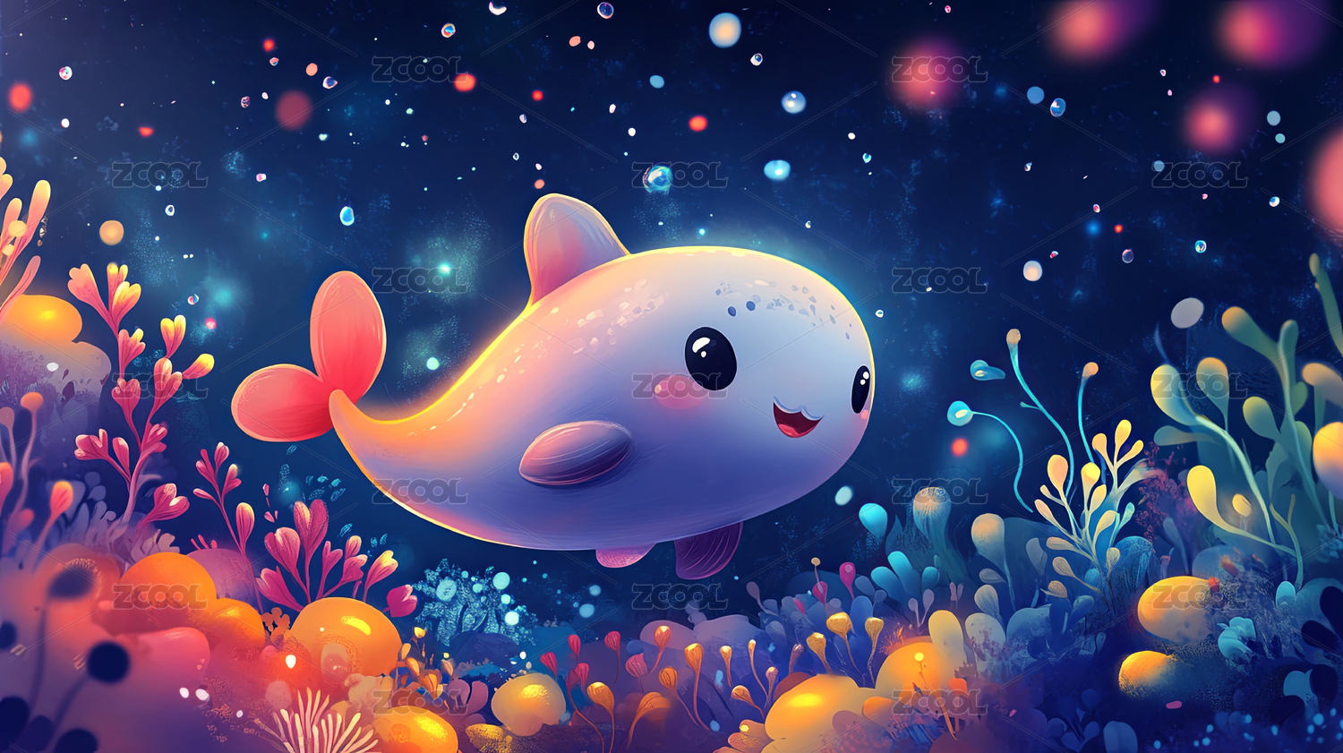 卡通,插画,植物,自然,夏天,风景,水母,动物,生物,海洋