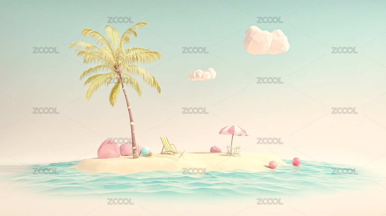 3D渲染椰子树夏季热带海岛夏天节气插图