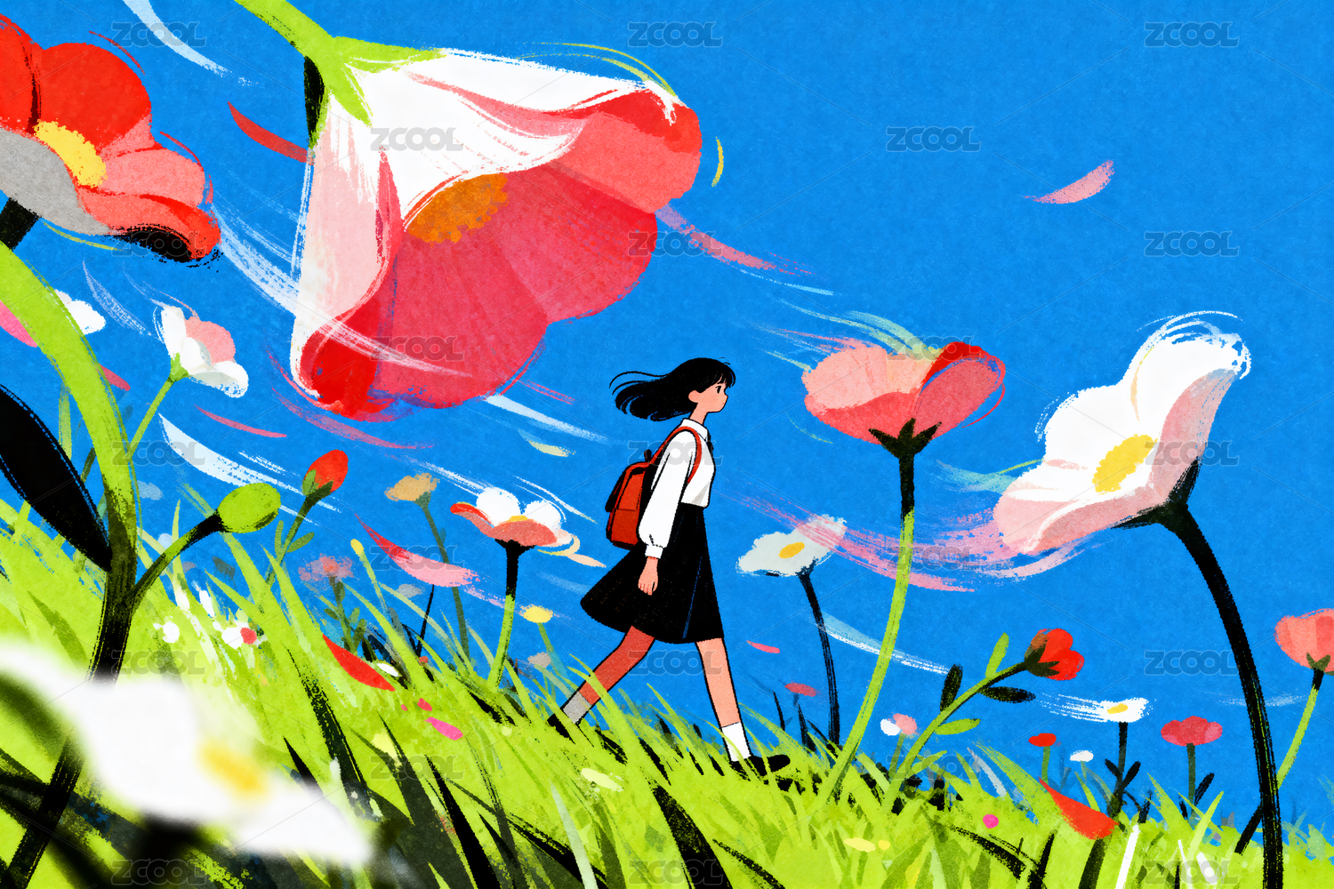 秋天秋季立秋秋分自然户外风景卡通漫画插画