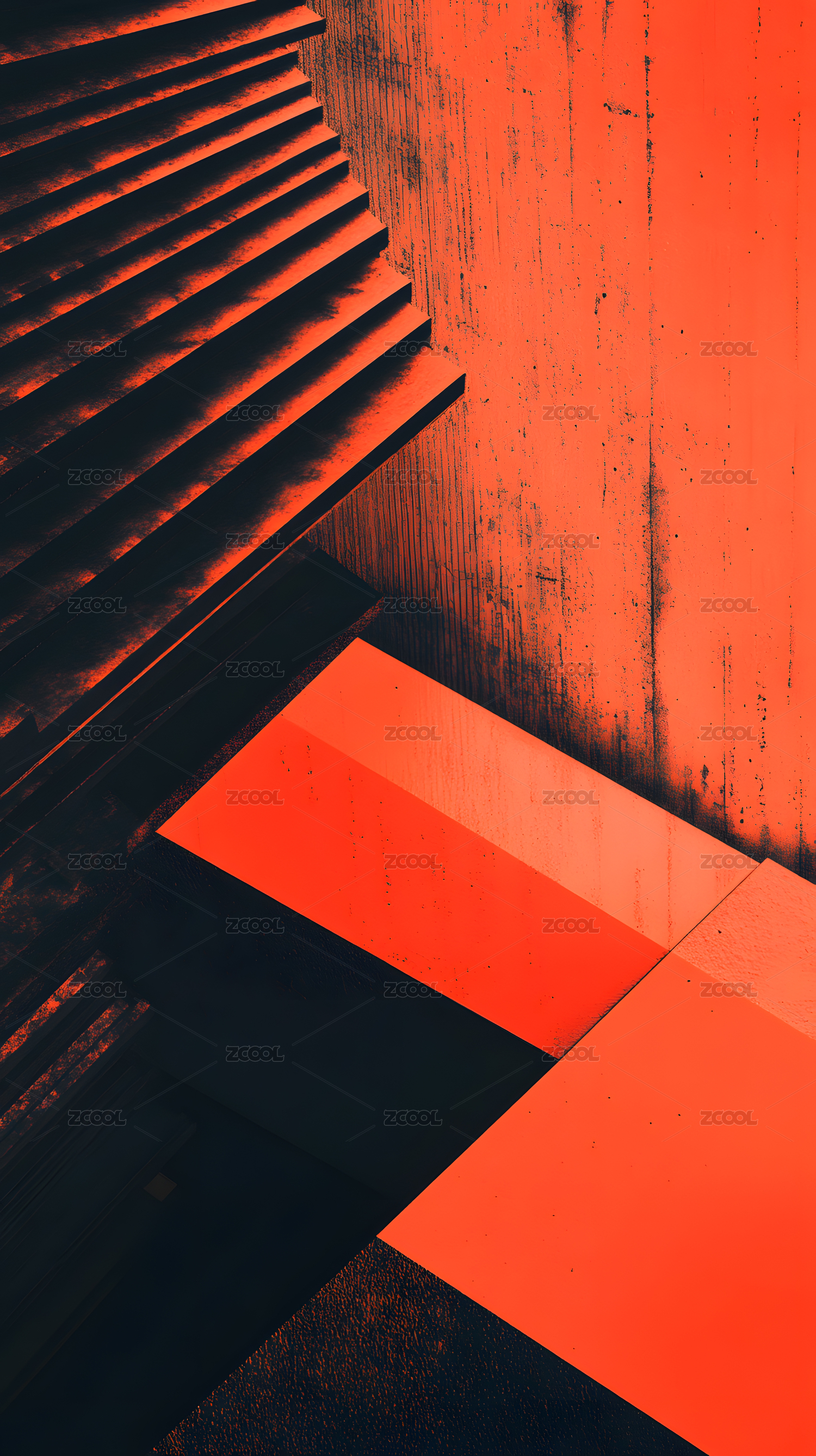 橙黑几何抽象建筑楼梯